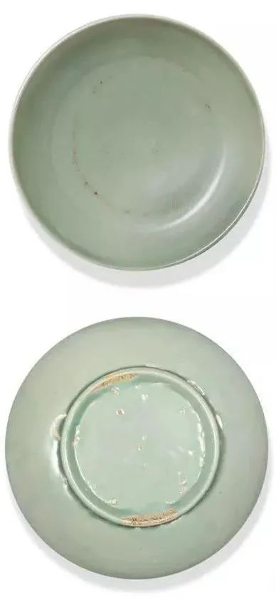 两窑口的烧造工艺几乎相同,如施满釉的情况下大部采用细小支钉(有称芝麻钉)在器底支烧,根据器物的大小,选择粗细不同的支钉,一般数量为三到六枚,还有在器物的足墙采用三角形支条支烧,数量为三、五枚;如果器物的足底无釉,就采取垫饼垫烧,这类器物所占比例较小;另外两窑的器物均为二次烧成,即先用低温烧成素胎后再挂釉,再以高温烧制。![]()