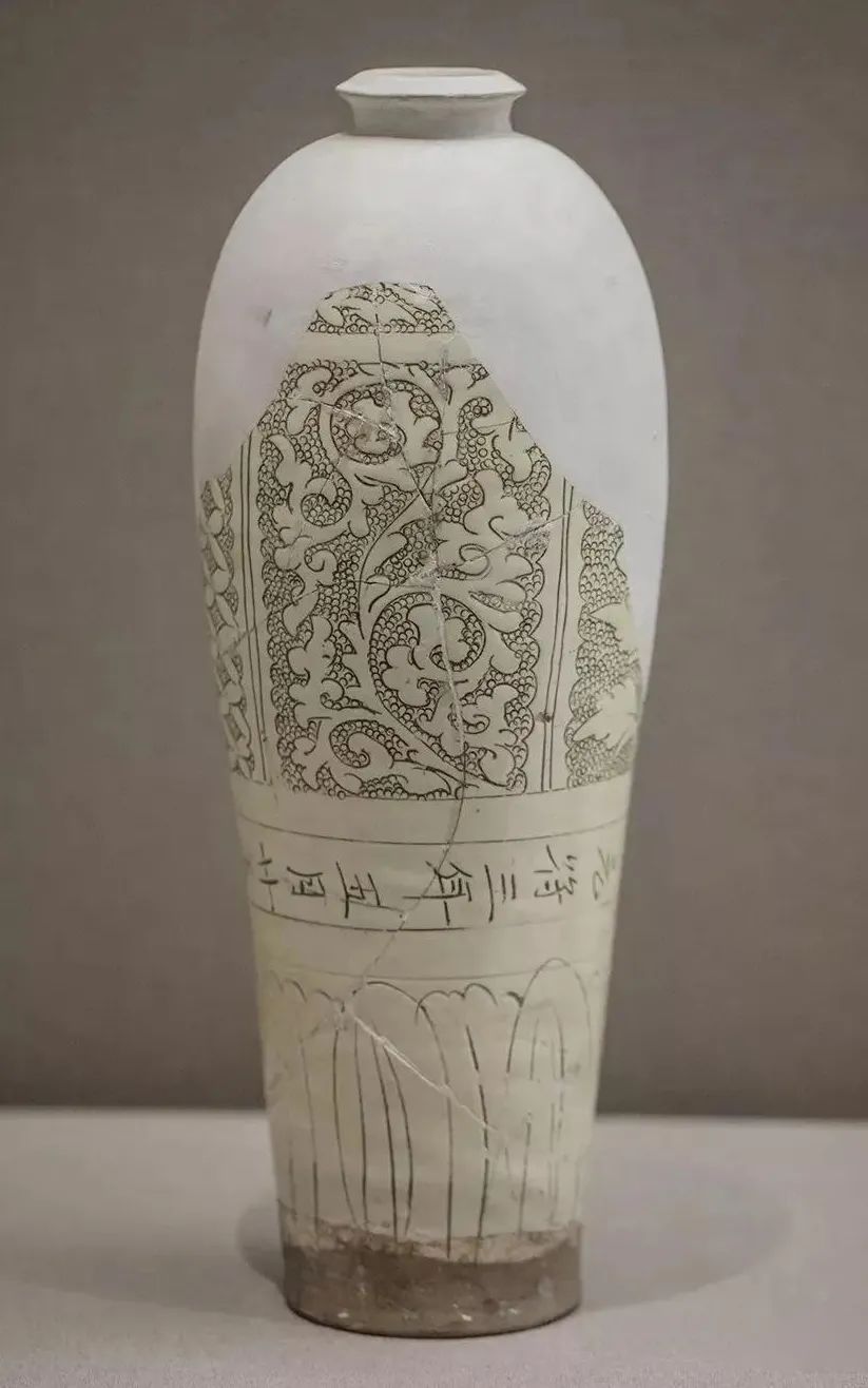 段店窑在胎体上出现大量的刻划工艺,除有部分印花工艺的龙纹、花卉,还有很多刻花工艺,在梅瓶、盘、枕面、笔筒、碗等器物,上刻有龙、凤、鹿、鱼、莲、缠枝花等;![]()