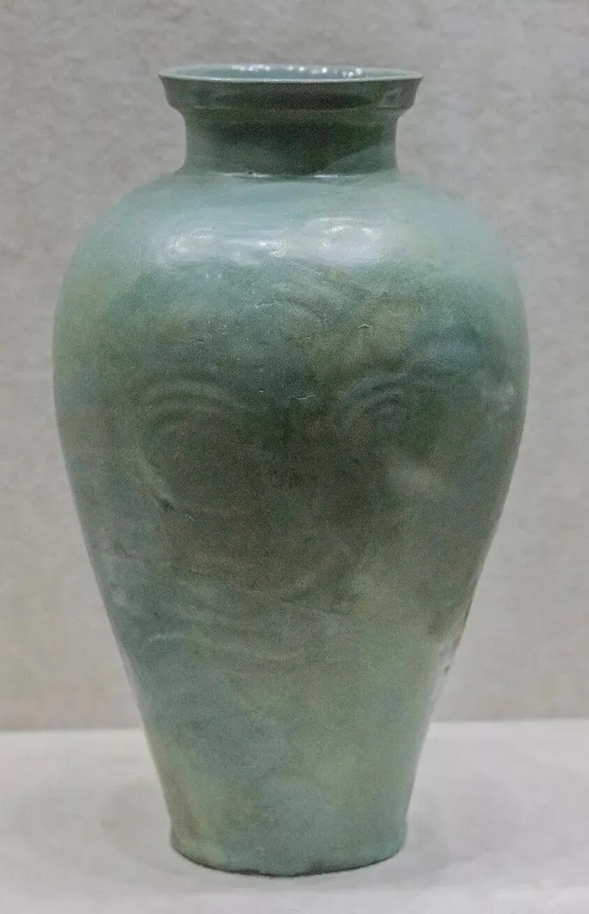 汝窑天青釉刻花龙纹瓶 北宋, 河南省平顶山市宝丰县清凉寺村窑址出土