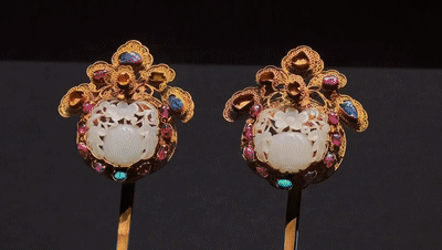 明金镶宝石白玉镂空云龙冠顶湖北省博物馆藏 梁庄王墓出土 图/文博圈