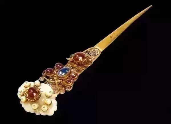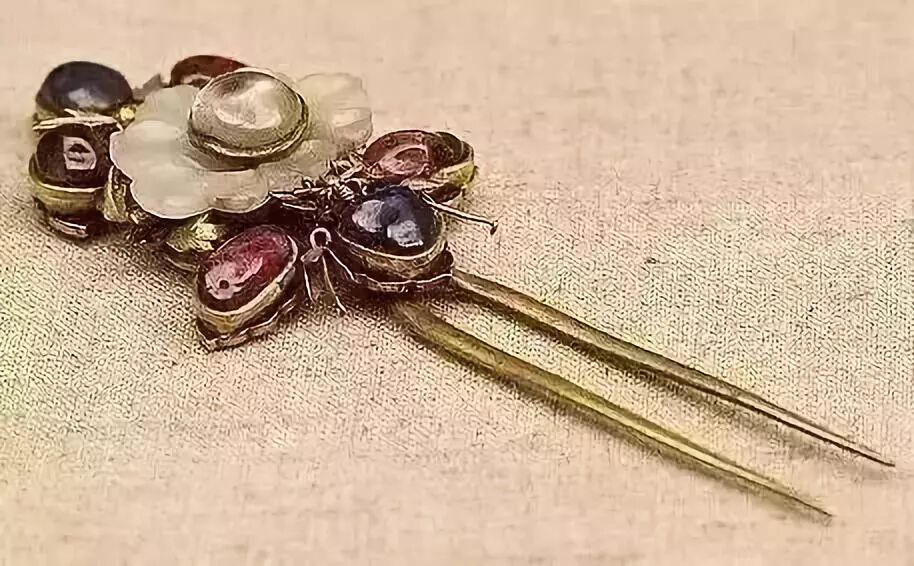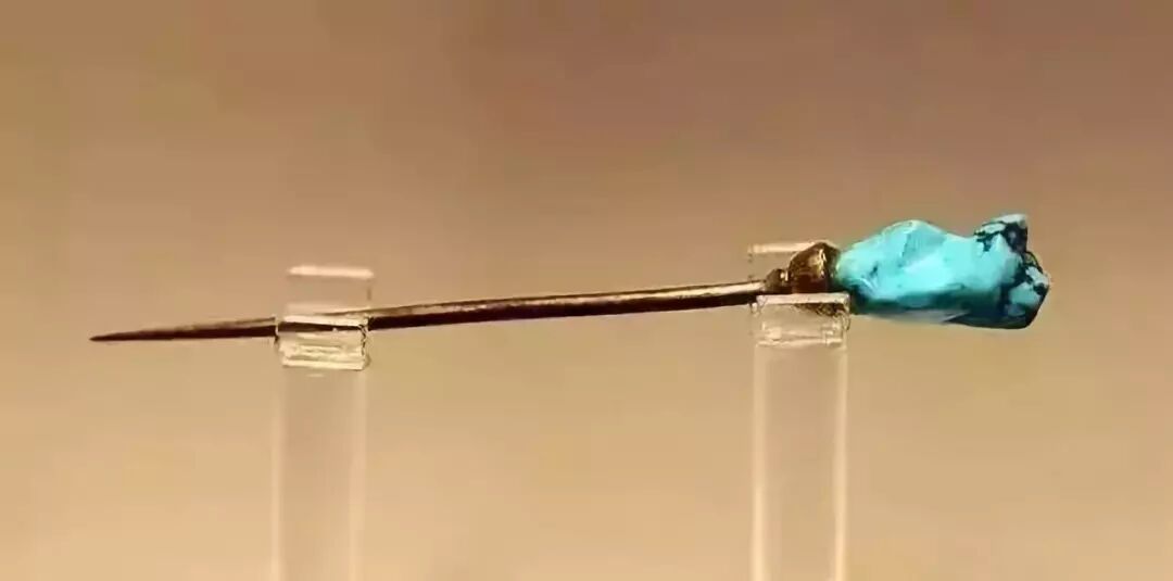 刚开始的时候,簪的材质主要是兽骨。到了汉朝,开始出现象牙簪、玉簪,还会在簪上镶嵌绿松石: