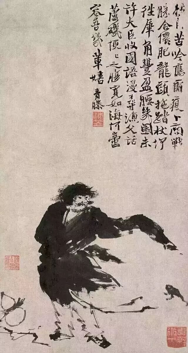 中国画的题跋按字数长短,大致可分为三类:长款、穷款和藏款。历代在画面上落长款的名家中不乏高手,他们不仅文采惊人,其书法更是了得。如明代徐渭画了一幅写意水墨葡萄图,画中题诗宣泄悲愤之情:“半生落魄已成翁,独坐闲斋啸晚风。笔底明珠无出卖,闲抛闲置野藤中。”近现代的吴昌硕、齐白石、黄宾虹、张大千等也都善于撰题长款。