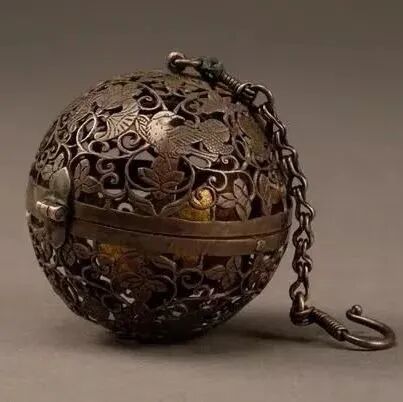 这是中国人用香最为经典的故事之一。杨贵妃贴身的香囊,因随葬而不腐,有学者认为很有可能是金属制作的,形似1970年代陕西西安何家村出土的唐代葡萄花鸟纹银香囊。