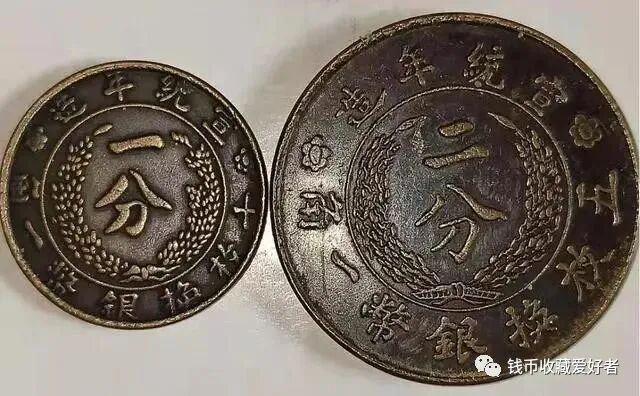 宣统年造大清铜币一分(黄铜)直径28.3mm,厚2mm,重9.08克;大清铜币二分(黄铜)直径39mm,厚3mm,重26.08克。 宣统元年(公元1909年),清政府决心从根本上解决银元币制混乱的问题。四月,度支部下令造币权收归中央,将各省所设银圆、铜元造币厂一律裁撤,仅留下粤、鄂、川、滇、奉、宁等六处为分厂,并由造币总厂指派各分厂厂长,从此全国各厂完全归度支部管理,彻底解决了各省滥造的情形。
