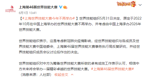 先是第46届世界技能大赛金银币,因为上海世界技能大赛不再举办,大概率取消发行。