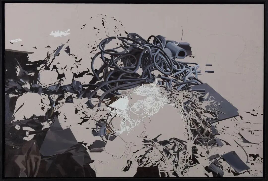 侯虹旭的作品——《水泥丛林》系列,表达了我们每个身处社会毫无“归隐”能力的人所必须面对的景观,我们无时无刻不在社会中生存发展,这是工业革命之后人类一手塑造出的成果,且没有任何退行的征兆。