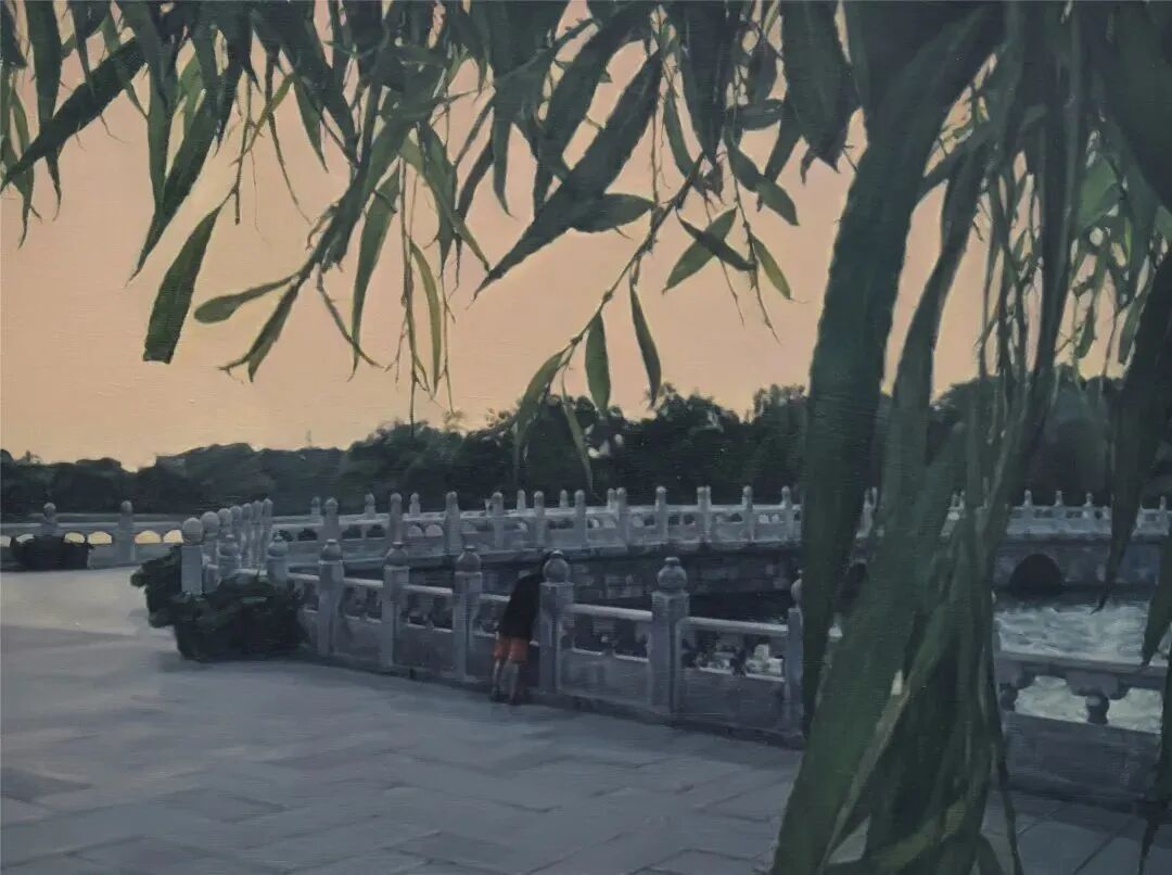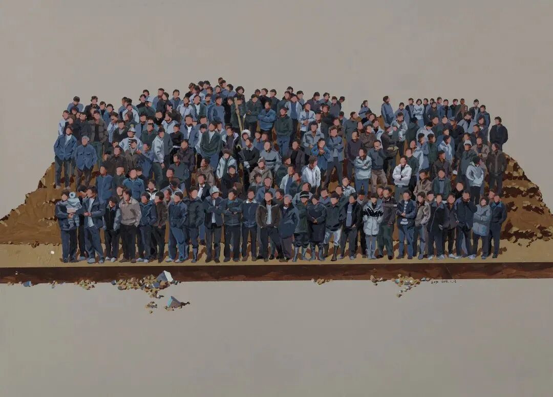 画面里都是重复的人物和风景,而这种“重复”并不是指相同图像的叠加,而是指在我们所生活的社会里,仿佛到处都充斥着一种似曾相识的感觉。试图在画面里建立一种规范,相同的服饰、规整的队列、弱化细节,把人物从背景中抽离出来。如此一来,还原出艺术家记忆中的样子,一个个凝固的画面。