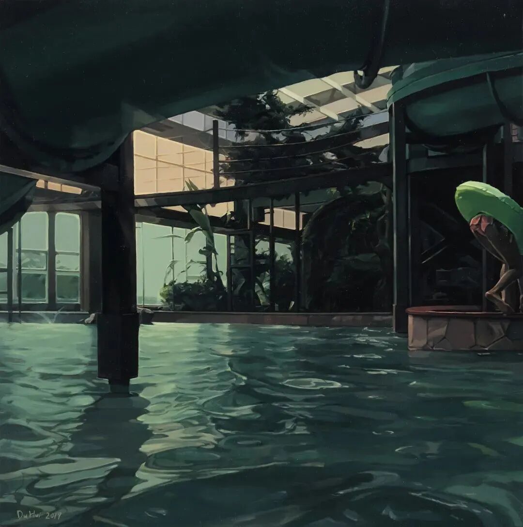 艺术家潜心研究并解决绘画当中的色彩问题,画面的色调与空间,及人物、桌椅家具、以及墙面之间的前后空间关系被安排的秩序井然且微妙耐读。