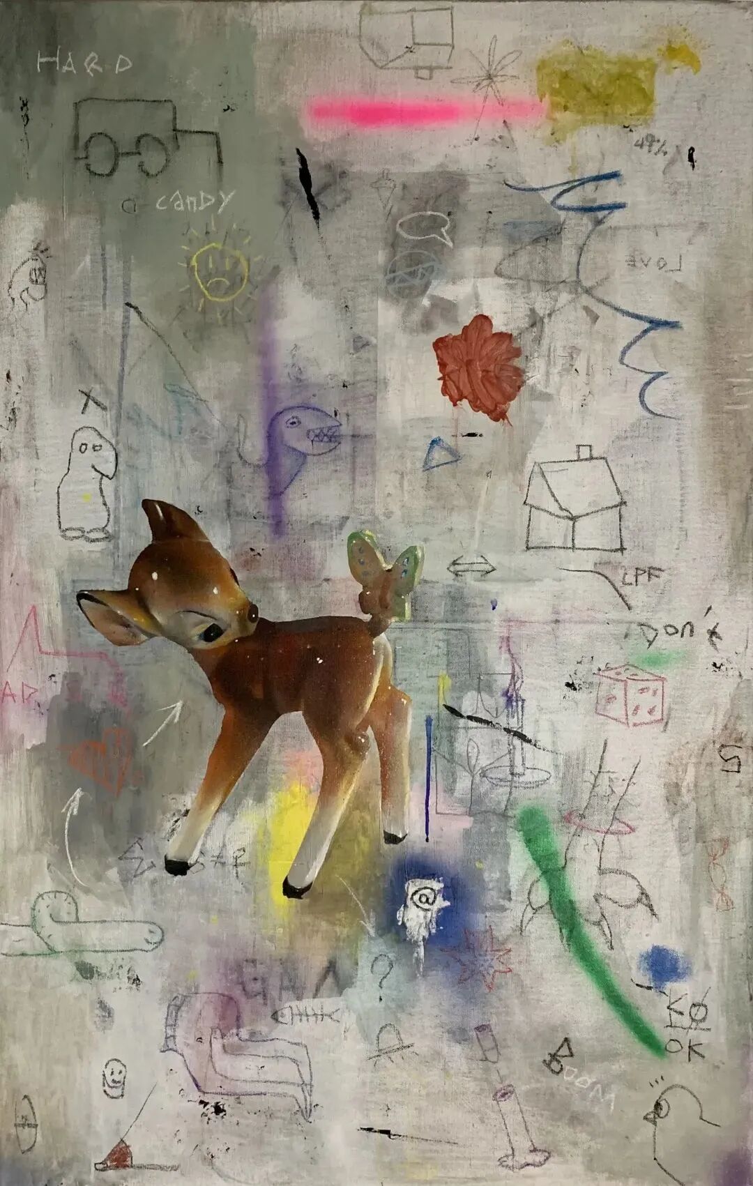 孙宇坤的的作品延续并扩散了一种二手图像融合及街头艺术的剪切和美术史采样的概念范畴。
