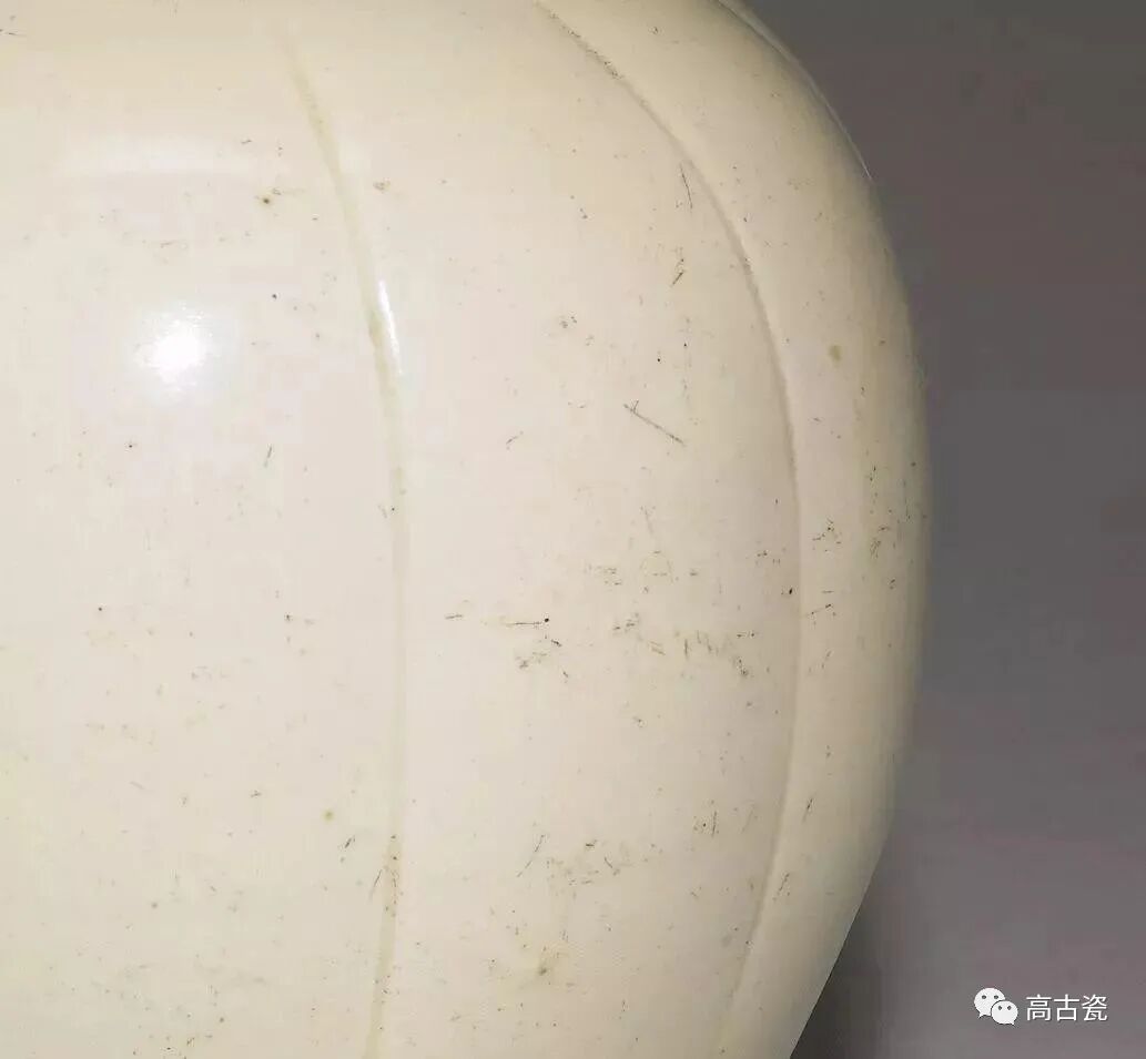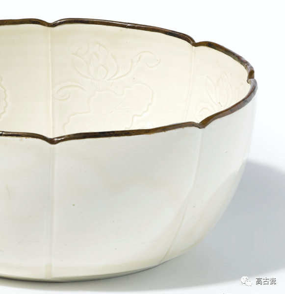 此八瓣花式大盌胎质细腻,器形端庄,盌内划花线条流丽生动,釉面柔润,色呈牙白悦目,聚处若泪痕而色略深,久历千年风霜,朴淳如昔。是宋式审美的完美再现,也是一件难得一件的定窑精品,是超越故宫馆藏定窑之珍宝。