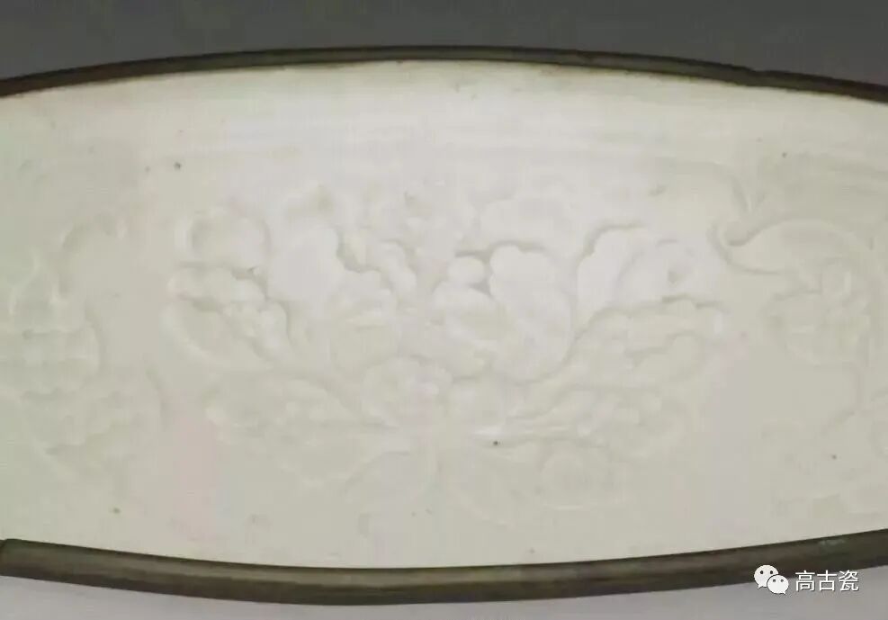 北宋苏东坡曾咏叹「定州花瓷琢红玉」,金人刘示阝亦记载有「定州花瓷瓯,颜色天下白」句,足见有花纹的定窑白瓷,风靡当时代。白色胎土上或以刀刻划花纹、或以模子范印花纹,罩上透明釉后,纹线间积釉色深,呈现清晰的图案,为牙白素净的瓷面增添无限的华美。这样含蓄温雅、变化万千的美感,是赏鉴家们心目中的白瓷典范,遂也为宋代以来各地官民窑场竞相袭仿。台北故宫藏定窑类型的瓷器近八百件,多数带花纹,无论划花流畅如画、印花繁丽如织绣,均能见到古人纹样设计的多样趣味。