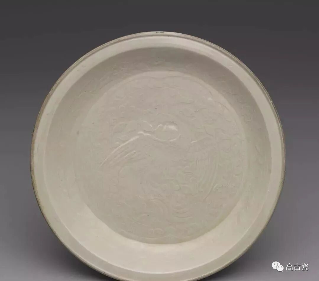 北宋/金 定窑白瓷印花舞凤折沿盘