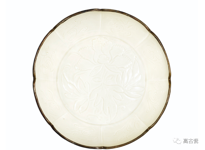 金 定窑牙白印花牡丹螭文葵瓣口碗