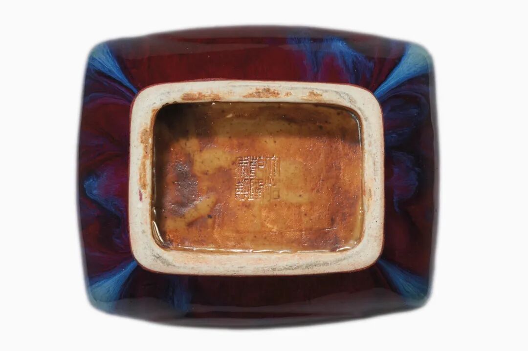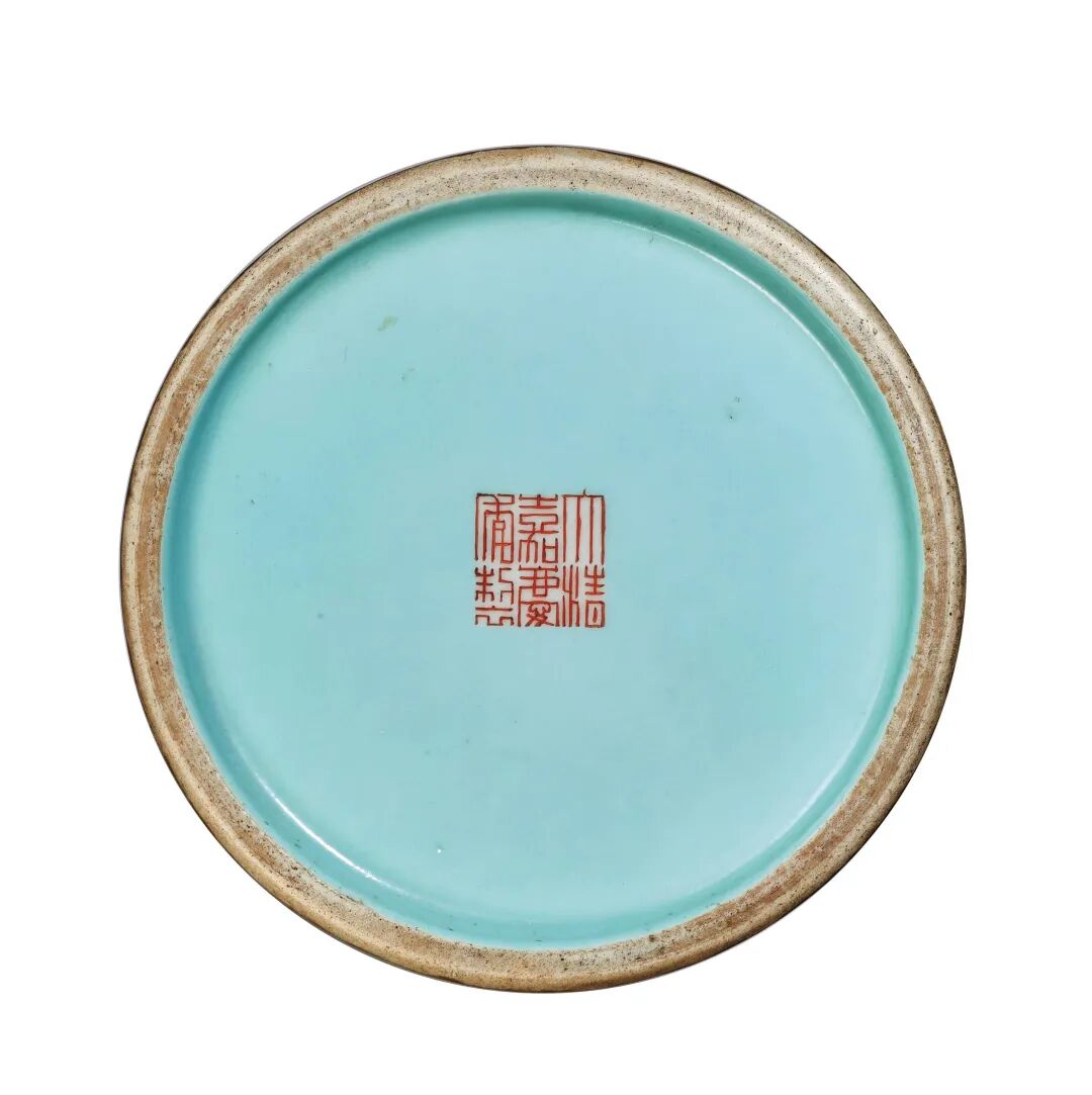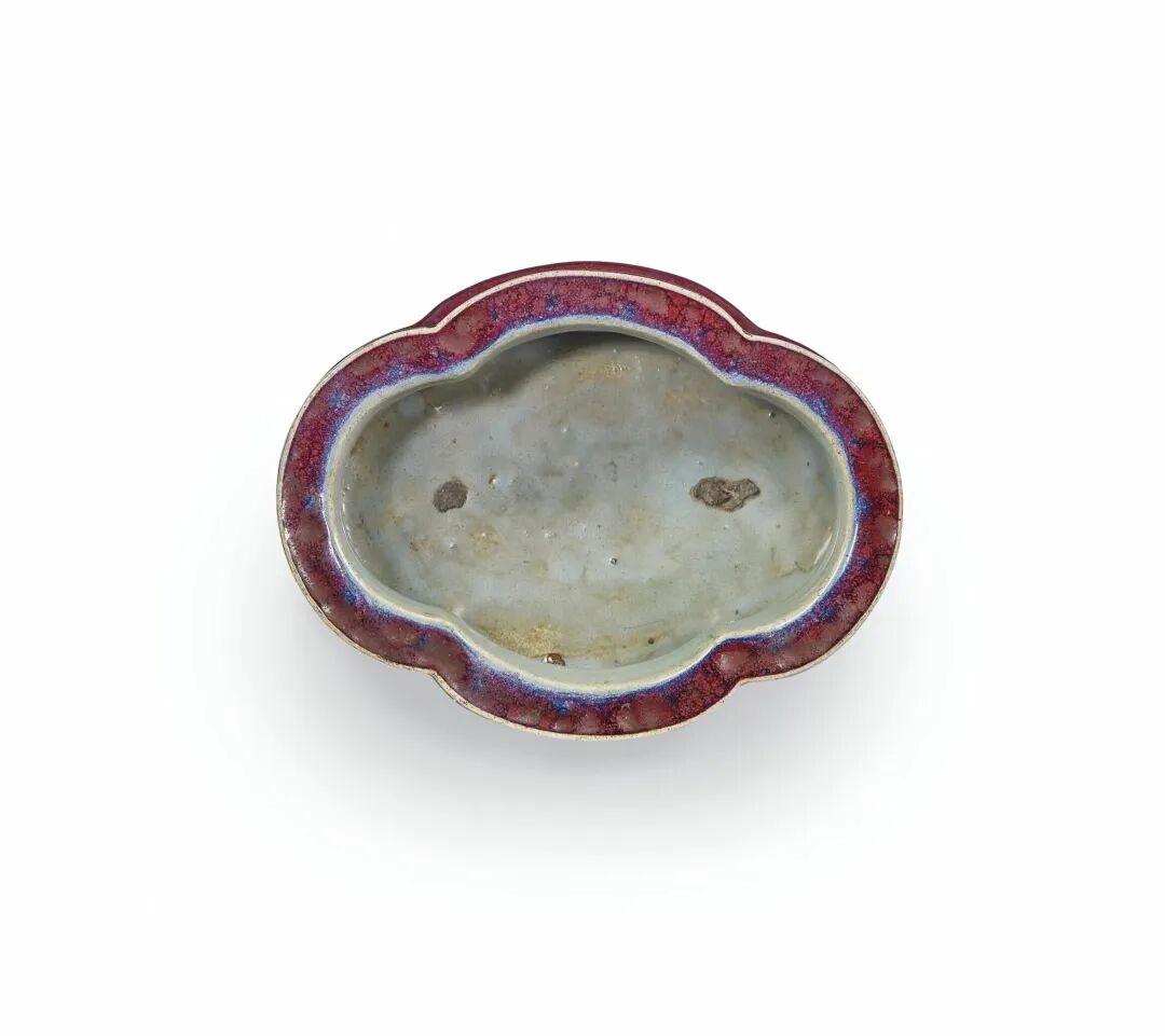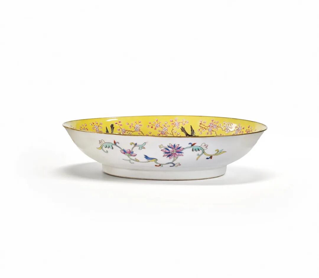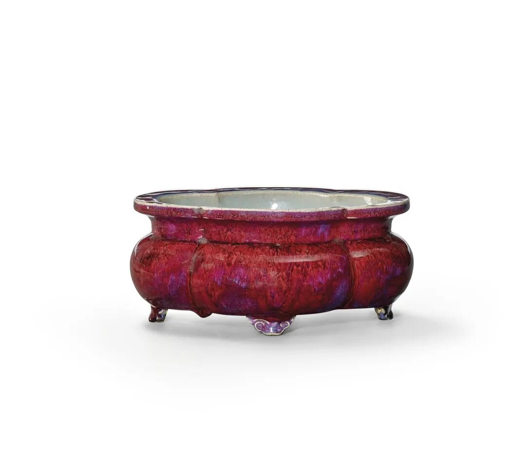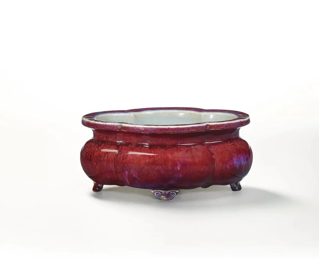 天蓝釉洋彩缠枝西番莲纹花式盆