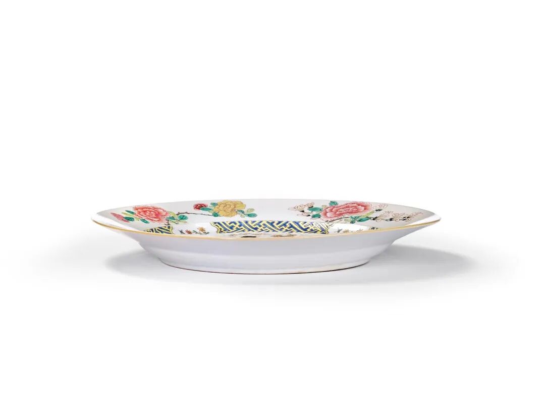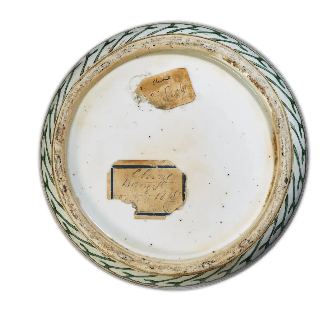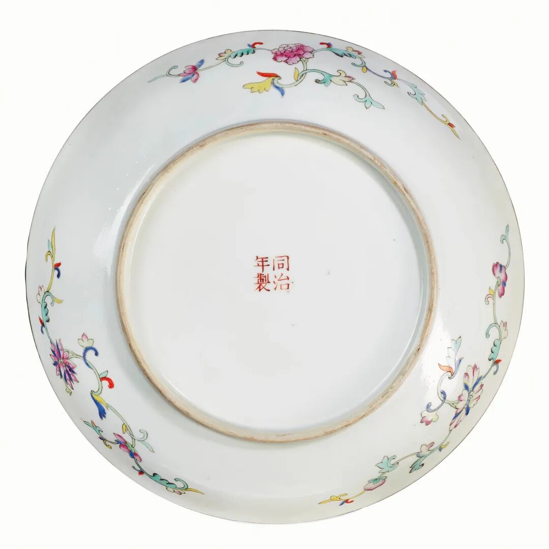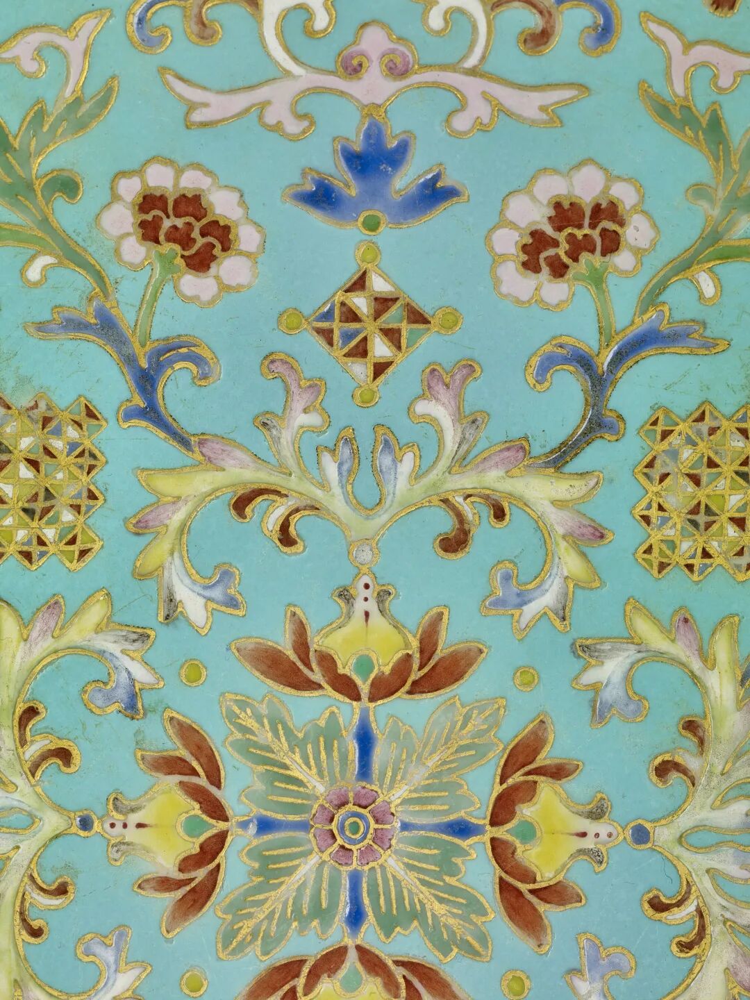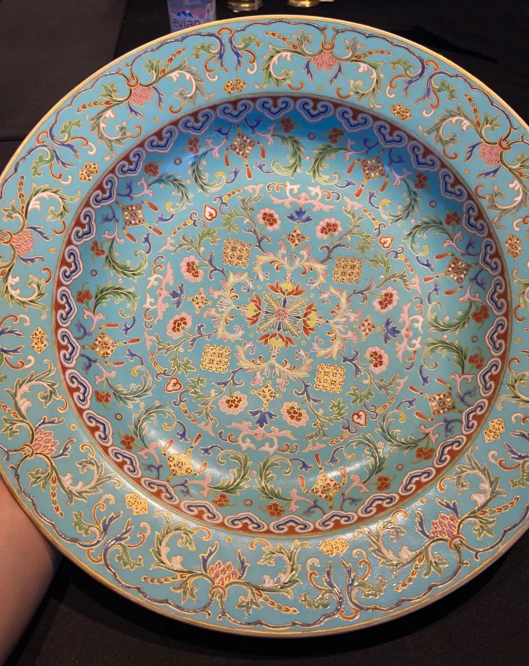 松绿地洋彩缠枝番莲纹仿掐丝珐琅折沿盘
