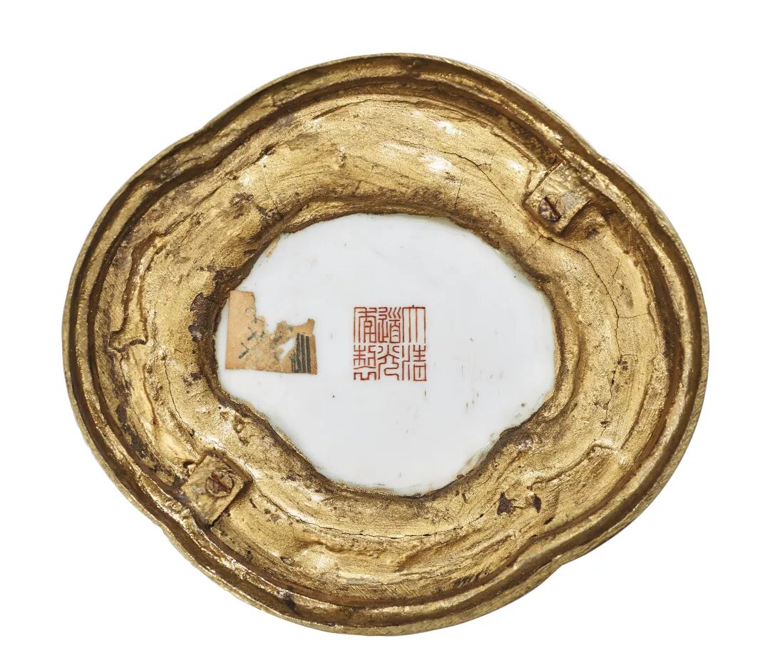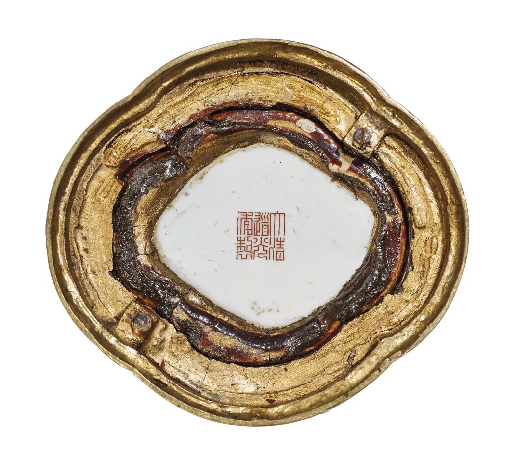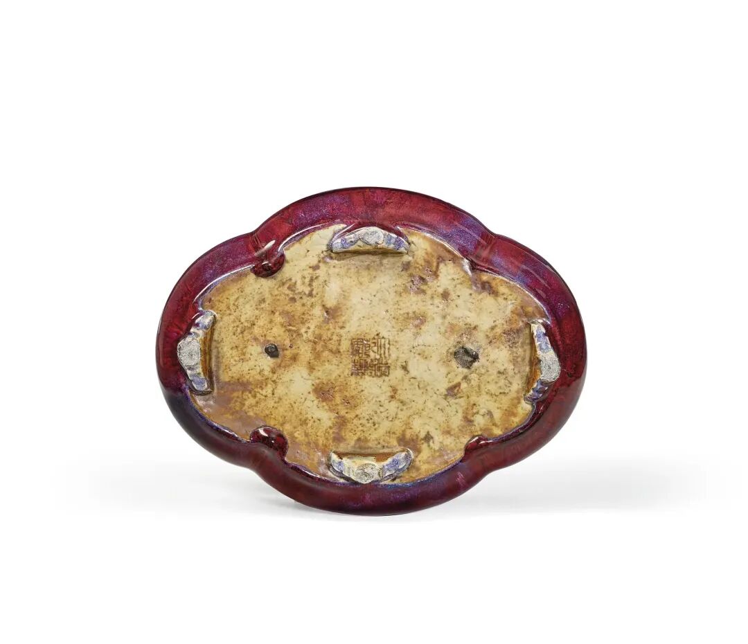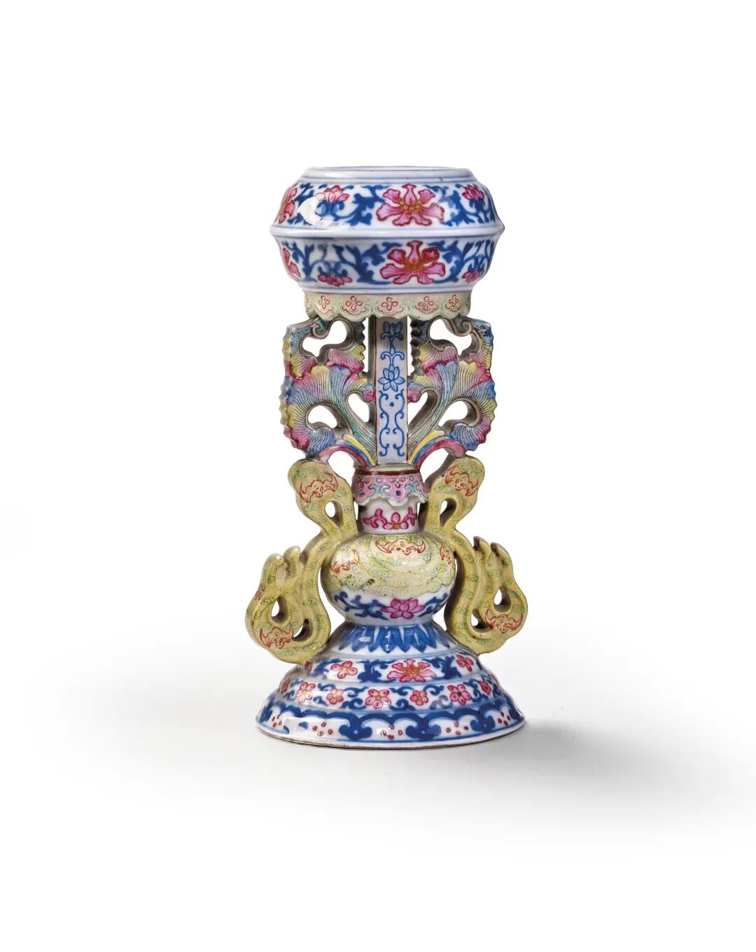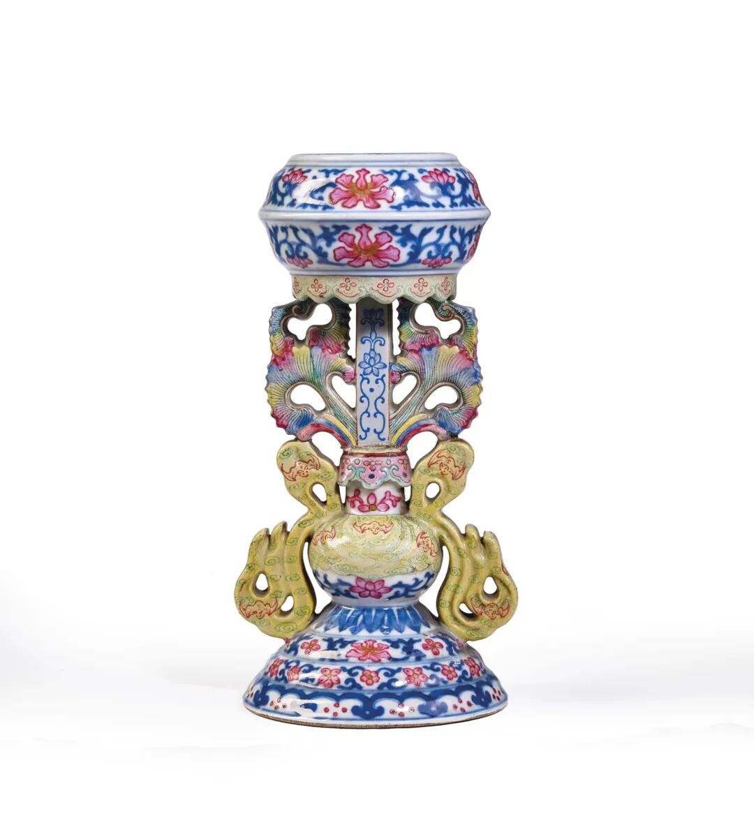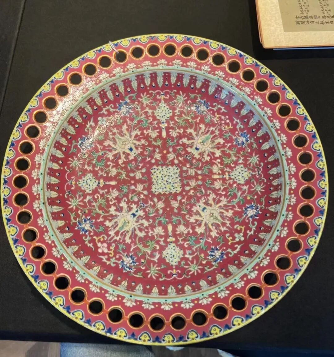 胭脂紫地粉彩番莲纹镂空折沿供盘