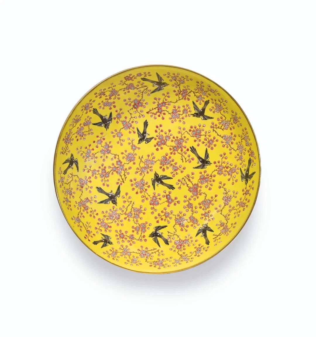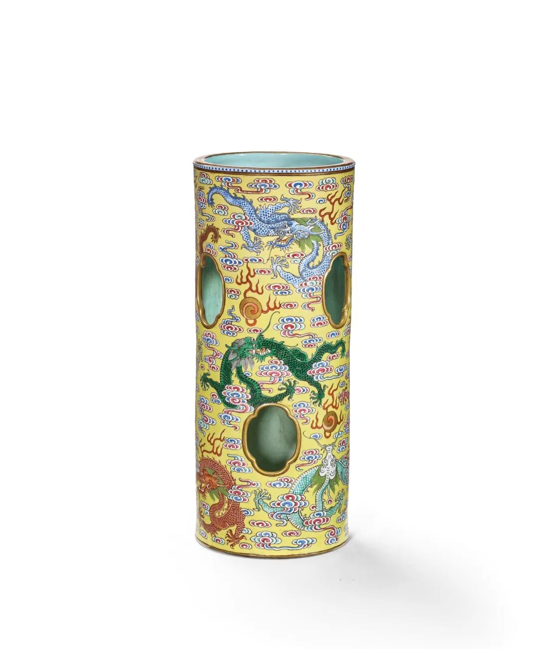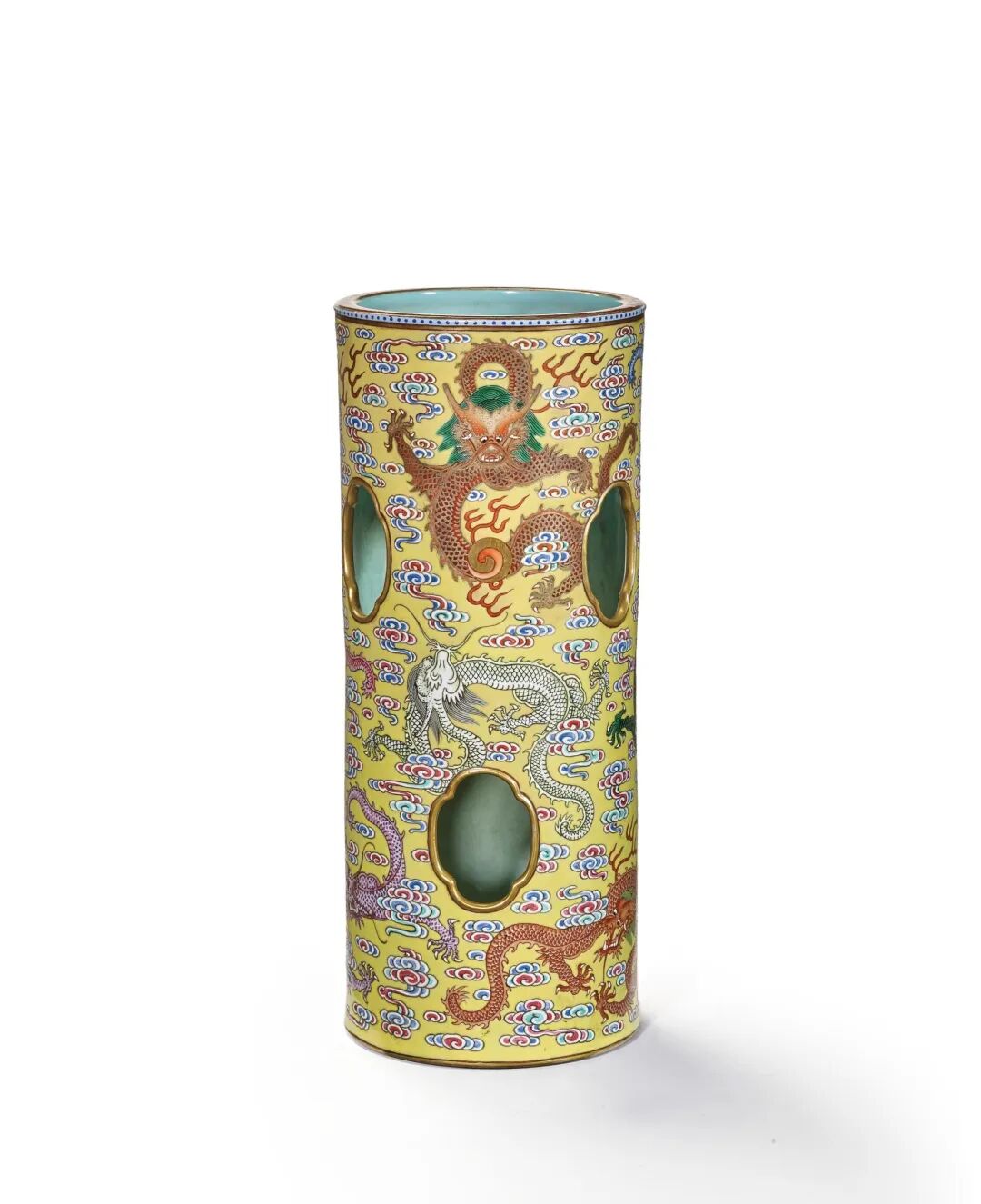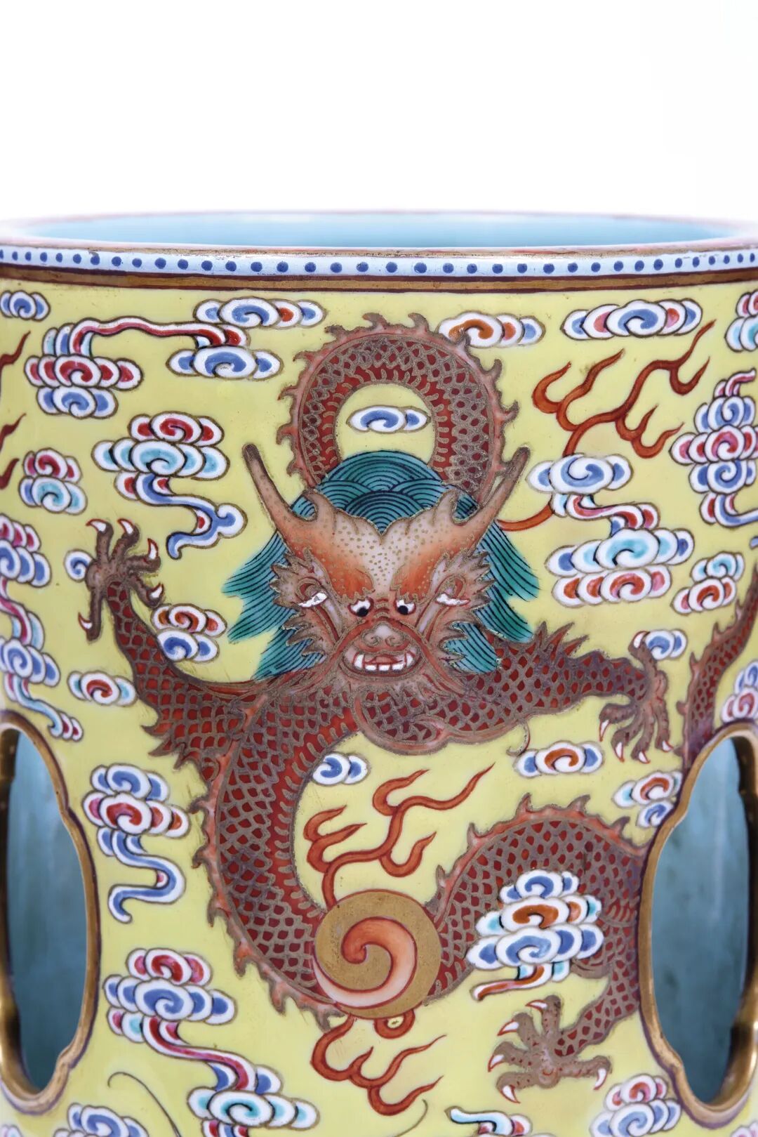 清嘉庆 黄地洋彩描金云龙纹帽筒