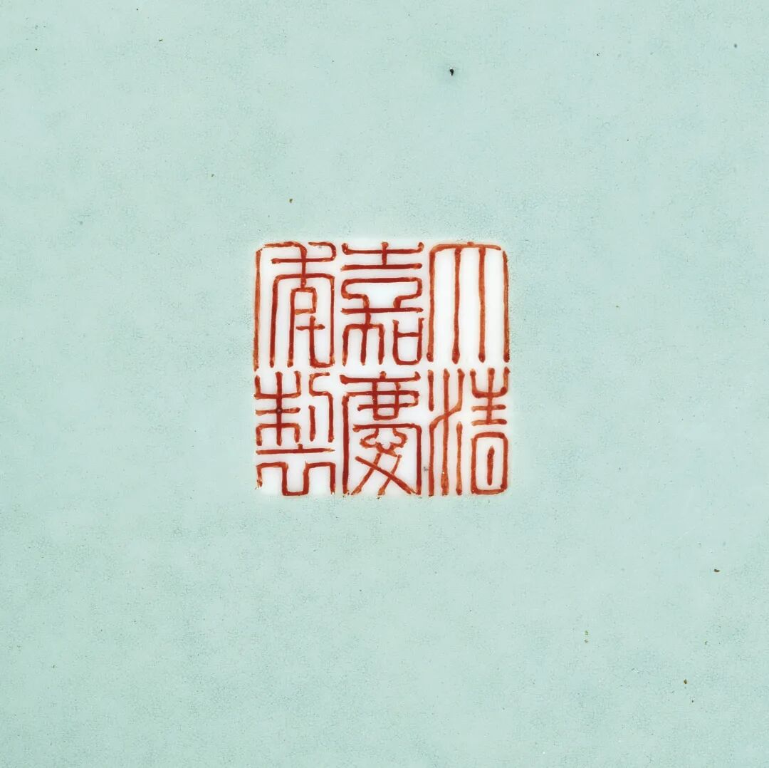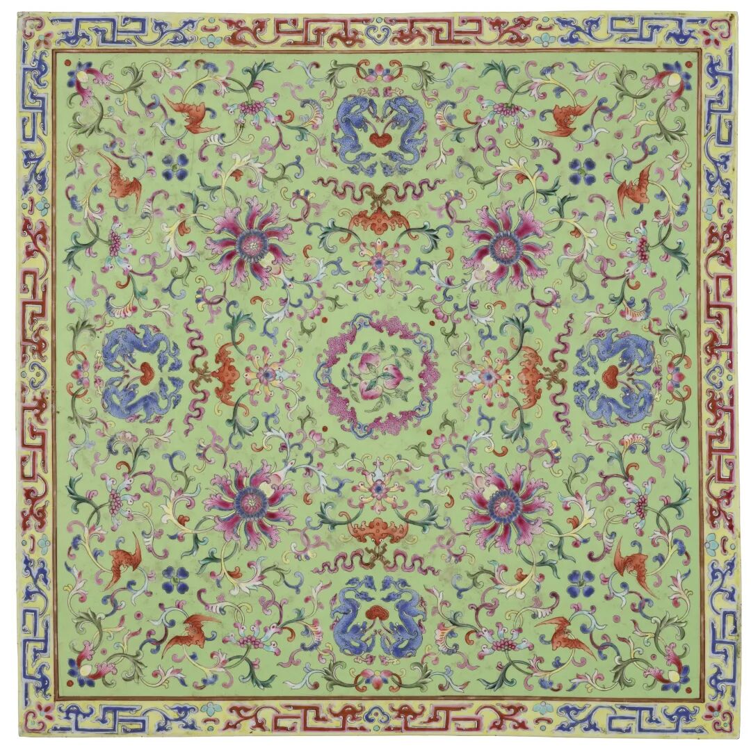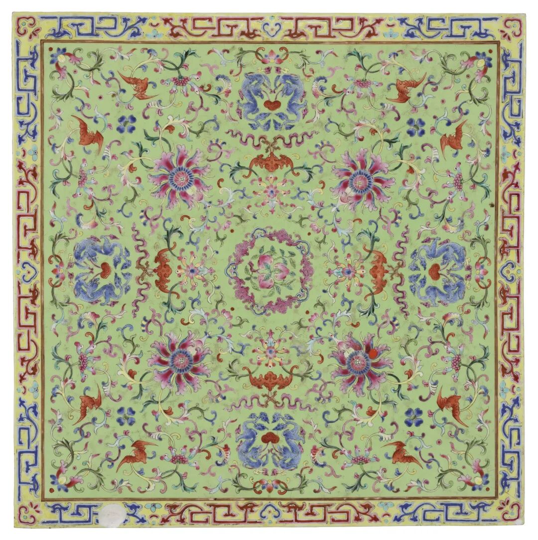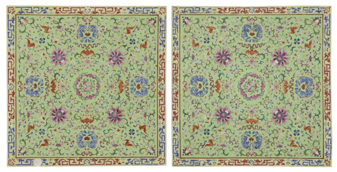 清嘉庆 绿地粉彩缠枝莲纹瓷板一对