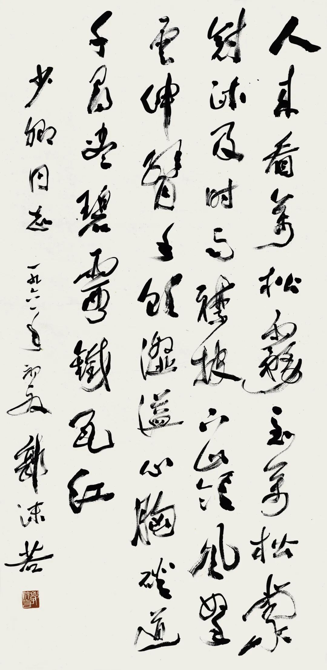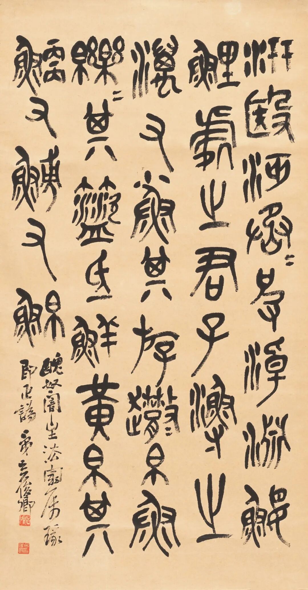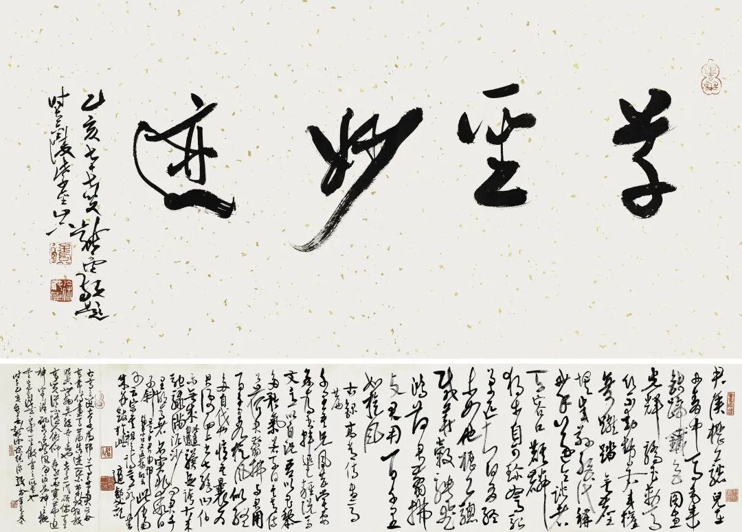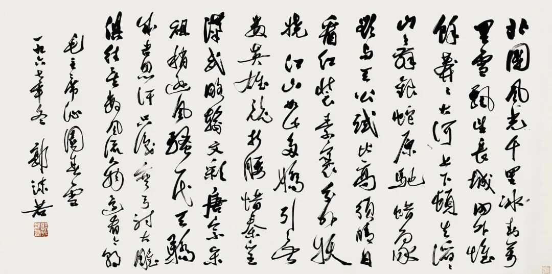 释文:汧繄泛泛,烝彼淖渊。鰋鲤处之,君子渔之,漫漫有鲨。其游白鱼,其菹底鲜。黄白其鳊,有鲋有白。1.《逝世五十年吴昌硕纪念展》谦慎书道会编,日本二玄社,1977年9月。2.《乐篆》第77期封面及P27,吴昌硕诞辰170周年纪念,2014年6月发行。展览:<吴昌硕逝世50年记念展>上野の森美术馆,谦慎书道会主催,1977年5月15日至21日。款识:积余先生指正。癸亥九月几望书于癖斯堂,安吉吴昌硕时年八十。1.《荣宝斋近百年中国书画精品集藏品系列》P196,荣宝斋出版社,1994年。2.《荣宝斋珍藏12·书法卷三》P6,吴昌硕等书,荣宝斋出版社,2012年。款识:宋玉赋,辛未十二月书于沽上借居。《李延年歌》,蜀人张爰。释文:东临之处子窥臣者三年,北方有佳人遗世而独立。款识:登独秀峰。惟士先生两政。廿六年秋晚行经都匀。释文:江山草木俱玲珑,锦帐银屏四望中。便是工师覃设计,工师也得号神工。释文:人来看万松,雾至万松蒙。冠沐及时雨,襟披下岭风。孥云伸臂手,饮瀣溢心胸。磴道千寻尽,碧霞铁瓦红。说明:1961年5月,已逾古稀之年的郭沫若,登游泰山。在两天的游程里,抒发豪情壮志,赞美山壮丽景色,并赋诗四首。登山一路,郭老兴致很高,不顾磴道险峻,仍然谈笑风生,说古论今,观览沿途风光,赞叹不止。中天门小憩后,继续攀登,穿步云桥,观五大夫松,赏松山。只见双峰对峙,绝壁生松,层层叠叠。突然,乌云穿行其间,风起松涛鸣,似巨浪拍岸,令人心荡松谷。骤雨袭来,郭老为此佳境所动,赋诗一首:人来看万松,雾至万松蒙。冠沐及时雨,襟披下岭风。拿云伸臂手,饮瀣溢心胸。磴道千寻尽,碧霞铁瓦红。款识:毛主席《沁园春·雪》。一九六七年冬,郭沫若。释文:北国风光,千里冰封,万里雪飘。望长城内外,惟余莽莽;大河上下,顿失滔滔。山舞银蛇,原驰蜡象,欲与天公试比高。须晴日,看红装素裹,分外妖娆。江山如此多娇,引无数英雄竞折腰。惜秦皇汉武,略输文采;唐宗宋祖,稍逊风骚。一代天骄,成吉思汗,只识弯弓射大雕。俱往矣,数风流人物,还看今朝。1.《中国书法家全集·郭沫若》P121,河北教育出版社,2002年5月。款识:毛主席《卜算子·咏梅》。费冰同志正字,可染于北京。释文:风雨送春归,飞雪迎春到。已是悬崖百丈冰,犹有花枝俏。俏也不争春,只把春来报。待到山花烂漫时,她在丛中笑。著录:《朴珍抱精·近现代名家书画作品集》P280,西泠印社出版社,2022年。引首:草圣妙迹。乙亥七十七叟钝庐敬题,时在金陵紫金山下。钤印:徐熙、徐纯原题跋:时在乙亥新春,钝庐徐纯原敬书,年七十又七。钤印:徐纯原印、长年释文:君侯枥上骢,儿在丹青中。马毛连钱蹄铁色,图画光辉骄玉勒。马行不动势若来,权奇蹴踏无尘埃。感兹绝代称妙手,遂令谈者不容口。麒麟独步自可珍,弩骀万匹知何有。终未如他枥上骢,载华毂,骋飞鸿。荷君剪拂与君用,一日千里如旋风。右录高常侍《画马篇》。千里吾兄,夙昔尝要余为书韩退之杂说《马文》,意以自况。吾以昌黎多矜气,若不同吾常侍公,何君翦拂与君用。一日千里如旋风。似终多自伐也。忆吾曩为君便面,上书七绝句,伯乐无成,此适自道。骥足夸古来,驰骤满泥沙。问君千里故,为者名实兆,乖日易斜。是日君由邗趋京口又返扬,故云“此当可云宗其祖之诗意耶,书成并跋于此。”钤印:更生、维新百日出亡十六年三周大地游遍四洲经三十一国行六十万里释文:流离异城廿年春,违捕频繁十死身。每取半生历花甲,成为大事整乾坤。天乎百亿万千劫,丘也东西南北人。中国存亡自关命,高歌醉酒笔如神。