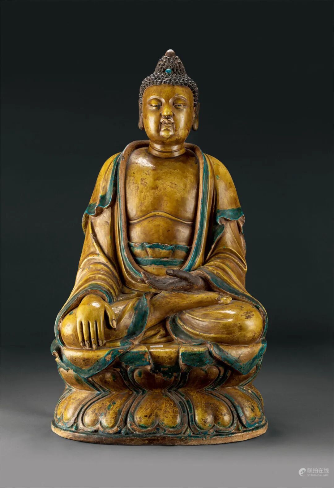 拍品估价:600,000 - 700,000 人民币2.保利香港2018年春季拍卖会,Lot 3039无量寿佛,即阿弥陀佛,其信仰即包含了对今生在世生命福寿绵长的渴望,也觊觎了对死后往生极乐世界的祈祷。在佛教信仰中,对阿弥陀佛的崇拜上自帝王将相,下至普通民众皆具有巨大的吸引力。明清之际,宫廷对以无量寿佛的推崇更为普遍,于清代最为鼎盛。康熙时期,康熙帝于晚年遵从二世哲布尊丹巴呼图克图受无量佛灌顶;乾隆时期,乾隆帝生前为自己及母后广造无量寿佛。存世品中有数件瓷质无量寿佛像,形制设计与本尊如出一辙,但尺寸差不多是本尊的一半,是同类例子中最大的一件,这意味着本尊应作为主尊被供奉于宫中。