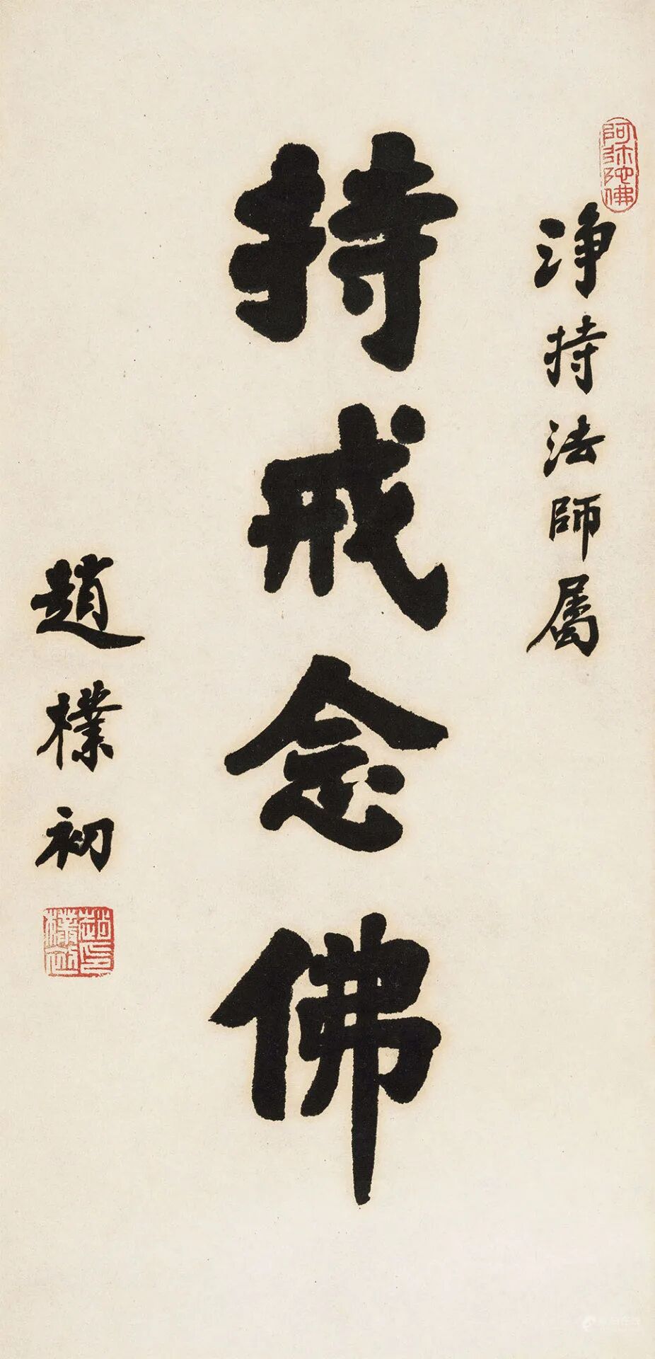 拍品估价:350,000 - 550,000 人民币说明:上款人净持法师,为苏州灵岩寺主持、苏州市佛协副会长。1980年,由明学大和尚提请,在赵朴初建议下,于灵岩寺创办中国佛学院灵岩寺分院,净持为七人院务委员之一。