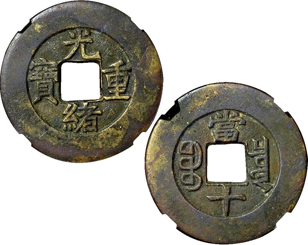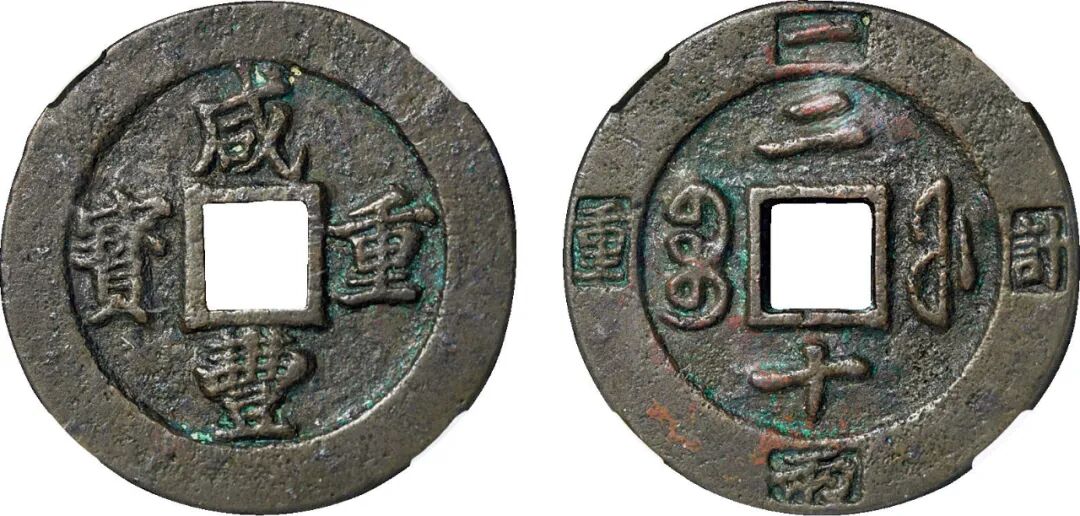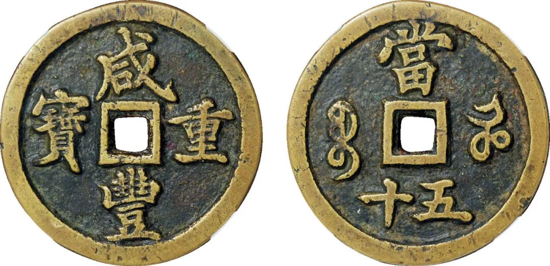 由十竹斋艺术集团旗下南京文物有限责任公司主办的『2022南京文物季拍专场拍卖会』预展正在火热进行中,并将持续至7月9日,拍卖于7月10日举行,展拍地址均为南京市秦淮区太平南路72号。是次拍卖将通过两大专场呈现570余件精品,涵盖钱币、瓷器、玉器、金属器、文房清玩、佛教艺术、中国书画等门类,题材多样,各具精彩,更有多件无底价拍品以飱藏家,赏用皆宜。联拍在线将全程直播,并提供实时同步竞拍技术和服务支持。Lot 114 清 咸丰重宝宝福当二十计重一两82