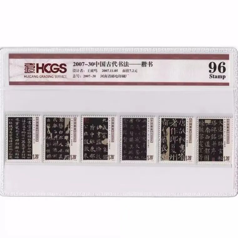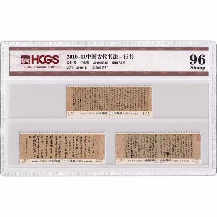 选取了自2003年至2011年中国邮政发行的中国书法邮票,全部都是封装评级过的,96分的高分,品相相当好!