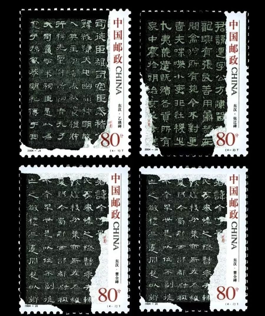 中国邮政于2004年12月5日发行一套4枚的特种邮票《中国古代书法——隶书》。