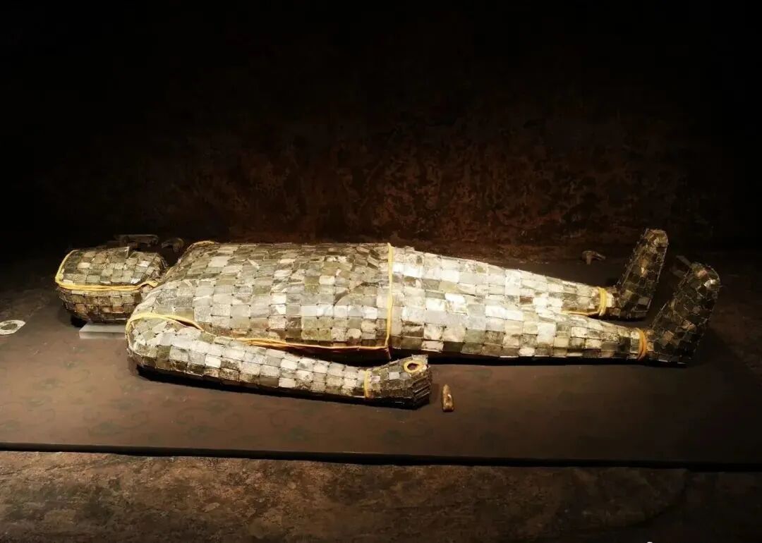 金缕玉衣,一种极其贵重的敛具,影射着汉家葬制的神秘与财富。玉衣按照缕线材质分为金缕玉衣、银缕玉衣、铜缕玉衣。哪怕只是一套完整铜缕玉衣,在一般省级博物馆也可以称之为镇馆之宝。但有一座市级博物馆,同一座展厅内展出了三类不同的玉衣,可称海内唯一。这些玉衣的原主人,多是两汉时期被封在徐州一带的刘姓宗室,甚至就是诸侯王。汉人认为,人死后只要肉身不腐,埋入地下就可以像蝉一样长出翅膀,羽化成仙。他们观察到,金玉自身不腐,因此汉人认为被金玉保护的身体可以同样不腐。