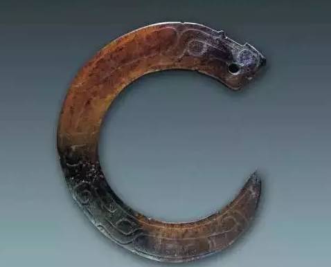 玉为浅绿色,半透明,器表有光泽。体扁平,呈“c”字形状。龙首雕刻宽大,头上饰一长角,头顶起尖脊,椭圆形眼,口部大张,上唇向上勾卷,长舌呈长条形向颈下勾卷。龙躯体卷成弯勾形,尾端平齐。