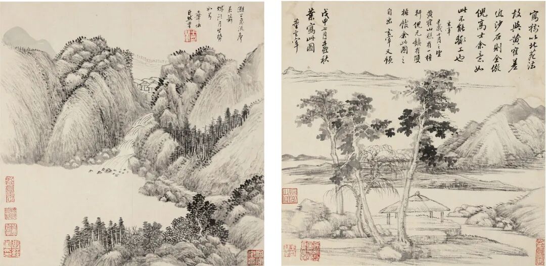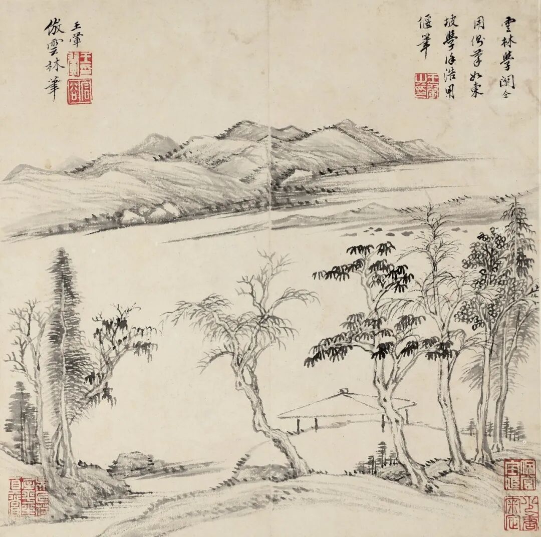 中国画史上有一奇特现象——明清以来不少画家喜欢标榜自己的作品不过是“临、摹、仿、抚”了古人的画艺。最具代表性的是清初的山水画家“四王”(王时敏、王鉴、王翚、王原祁),而王翚更是其中的佼佼者。因此,近世某些人错误地判定他们为“复古主义”或甚至反对“创新”云云。其实古往今来一切打着“复古”旗号者无一例外均是“托古改制”以借古开今。最著名的如西方十五世纪的所谓“文艺复兴”(Renaissance),准确的译语为“文艺复古”,因意大利文Renaissance本义为古希腊罗马文化之“再生”——他们同样也是借“复古”的名义“创新”。本文介绍王翚的《仿古山水册》中,我们可以窥见他之集古人“大成”的“笔墨”创新成就。