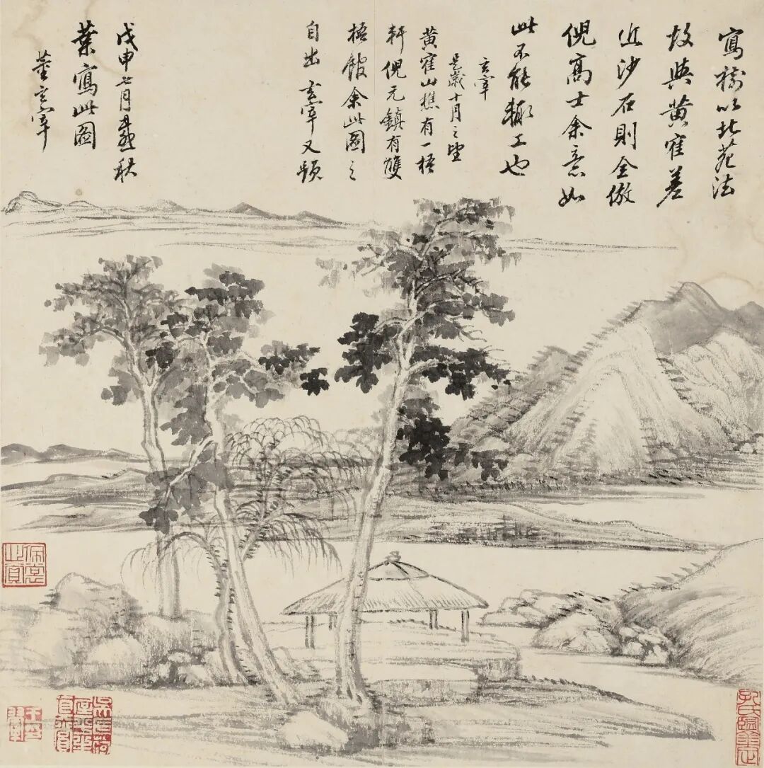 倪元镇有双梧馆,余此图之自出,玄宰又题。