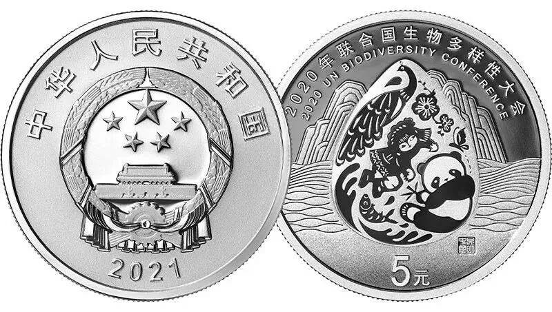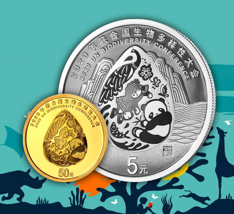 这套币的设计真的非常不错,金币和银币的币面主景图案都为本次联合国多生物多样性大会的会标。
