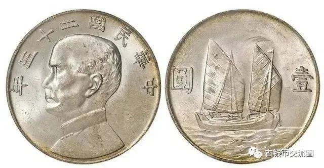 1934年10月以后生产的,为民国二十三年船洋,一直生产到1935年底,共生产了9878万枚。