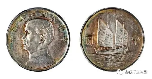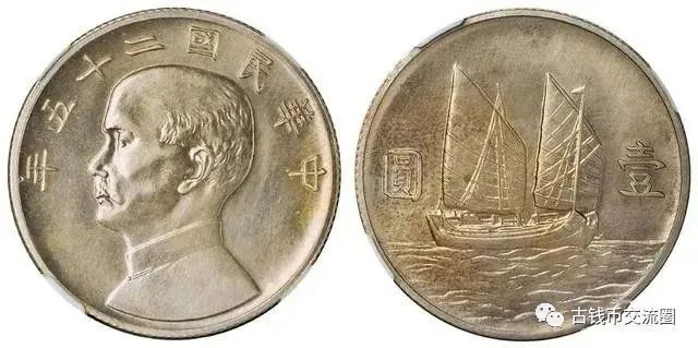 民国二十五年,孙中山像背帆船中圆小型银币样币