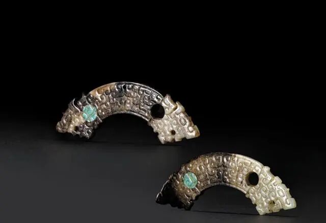 lot 34明代 虎首谷纹玉璜一对 白玉