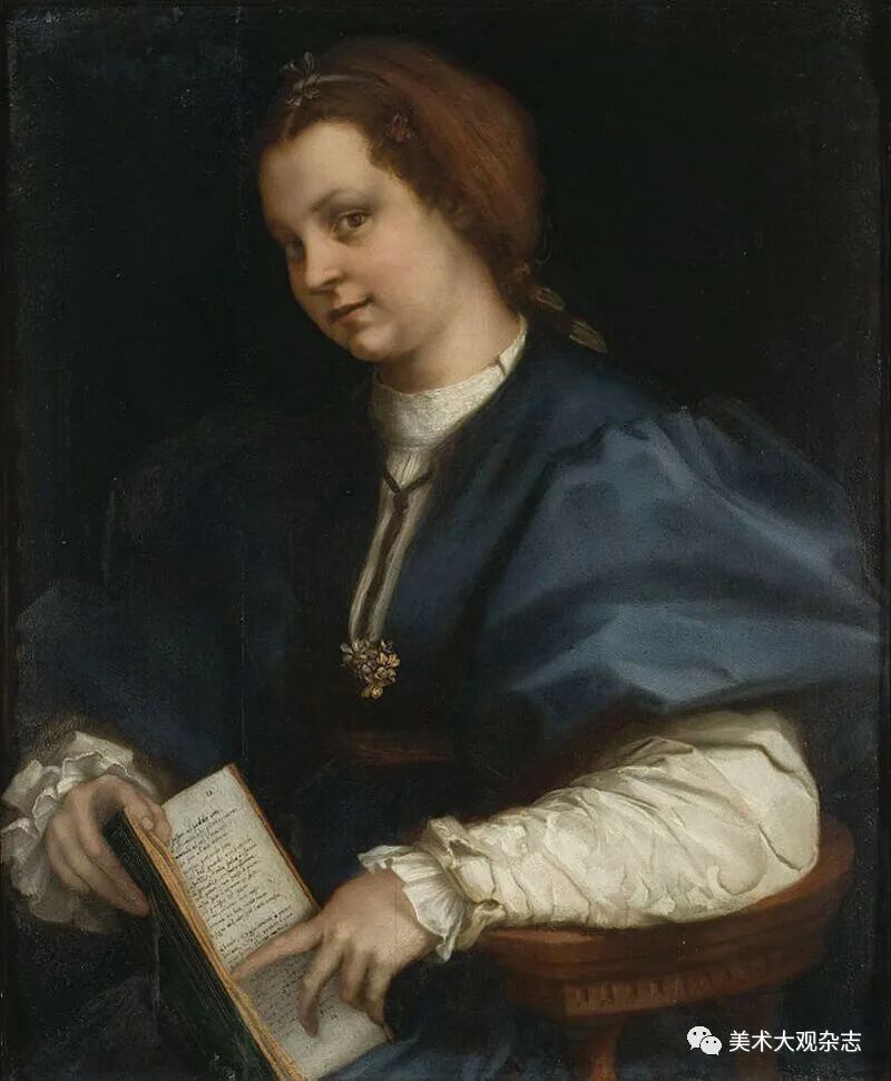 图 14ˉ 手执彼特拉克诗集的少女像ˉ 木板油画 ˉ87c m×69c mˉ 安德烈亚·德尔·萨托 ˉ1526—1528 年ˉ 佛罗伦萨乌菲齐美术馆藏
