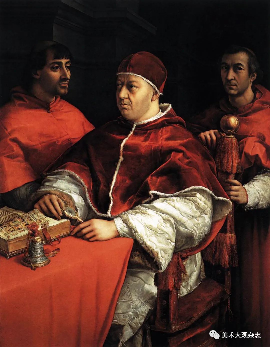 图 15ˉ 利奥十世与两位红衣主教ˉ 木板油画 ˉ154cm×119cmˉ 拉斐尔 ˉ1518 年 ˉ 佛罗伦萨乌菲齐美术馆藏