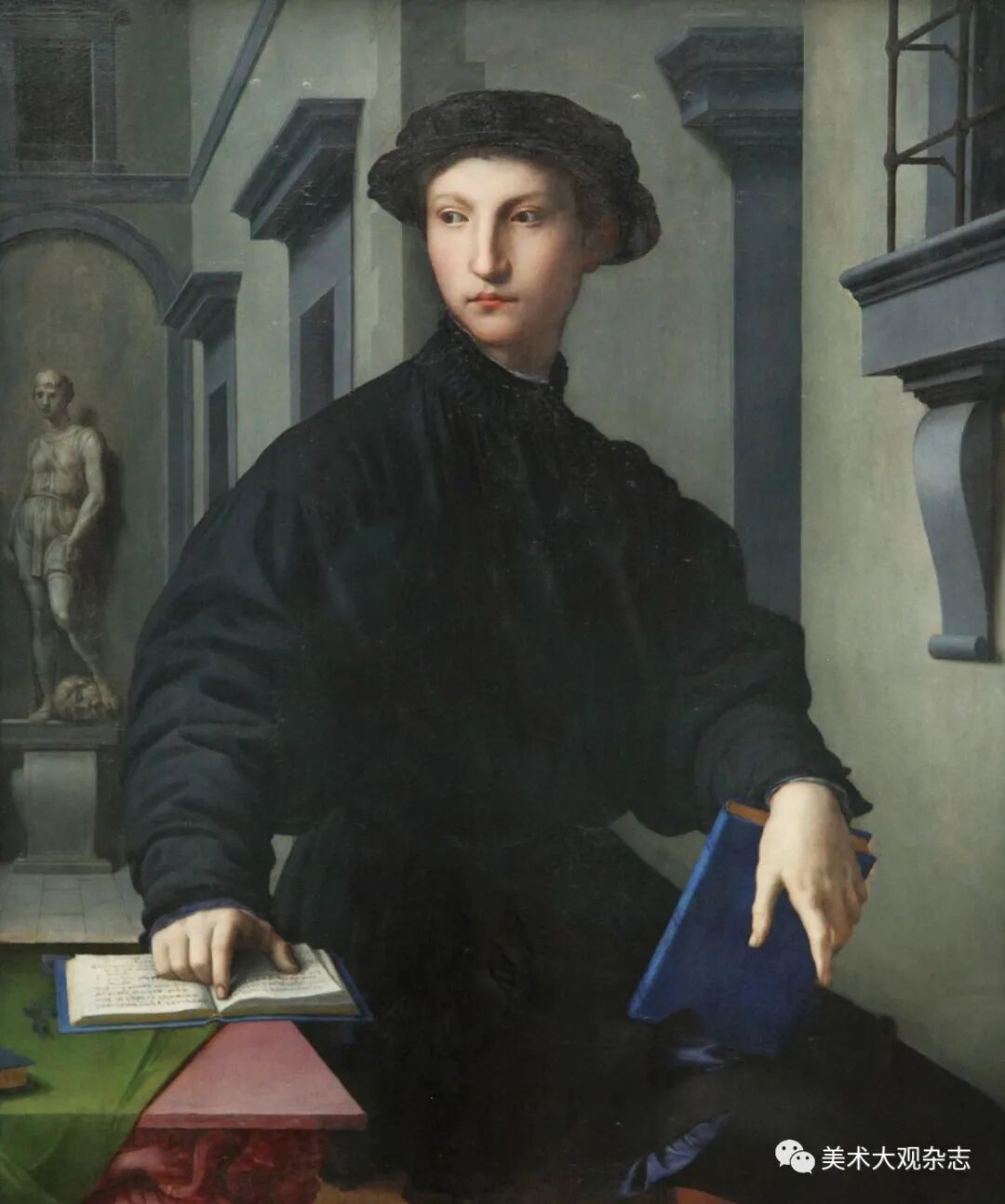 [25]佛罗伦萨最早的四分之三身立像(three-quarter-length standing portrait)是多梅尼科·普里戈(Domenico Puligo,1492—1527)创作于1525—1527年间的《男子像》,现藏于皮蒂宫。该作受到拉斐尔1518年创作的《乌尔比诺公爵洛伦佐·德·美第奇像》的启发,并将四分之三身立像的新格式在佛罗伦萨推广,蓬托尔莫、罗索(Rosso Fiorentino)和布隆奇诺都竞相仿效,见Philippe Costamagna, “De l’idéal de beauté aux problèmes d’attribution: vingt ans de recherche sur le portrait florentin au XVIe siècle,” Studiolo 1(2002): 200。