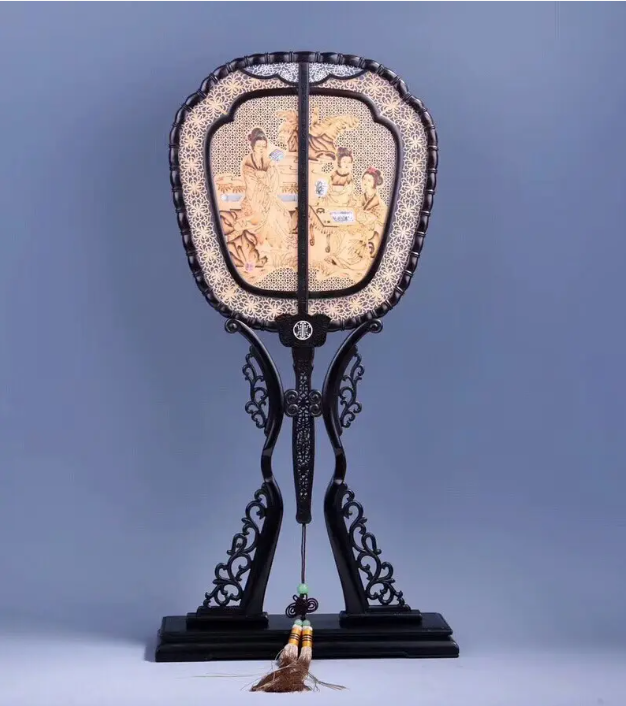 中国传统的团扇出现于西汉,手柄置于中间,用法与现代相同。