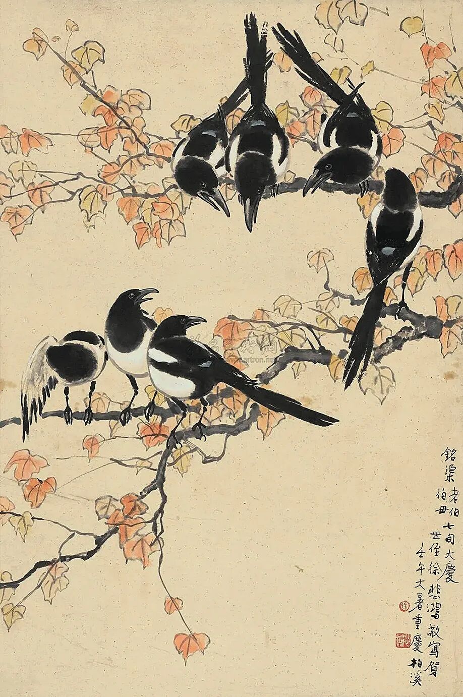 【诗堂】悲鸿师写《鹊踏枝》之前,傅抱石作此《深溪小楼图》,构意新颖,笔墨纵横,深具抱石先生国画特色。楼内独坐人物,有神游万里之致,尤耐人寻味。八十七叟义林记,乙亥夏于成都。印文:义林【说明】屈义林(1908-2004),生于重庆市荣昌区清江镇,籍贯四川省泸州市,曾师从徐悲鸿、张大千。曾任四川徐悲鸿、张大千艺术研究院院长,四川省文史研究馆馆员等。被徐悲鸿称为“最得意的四川弟子之一”。![]()