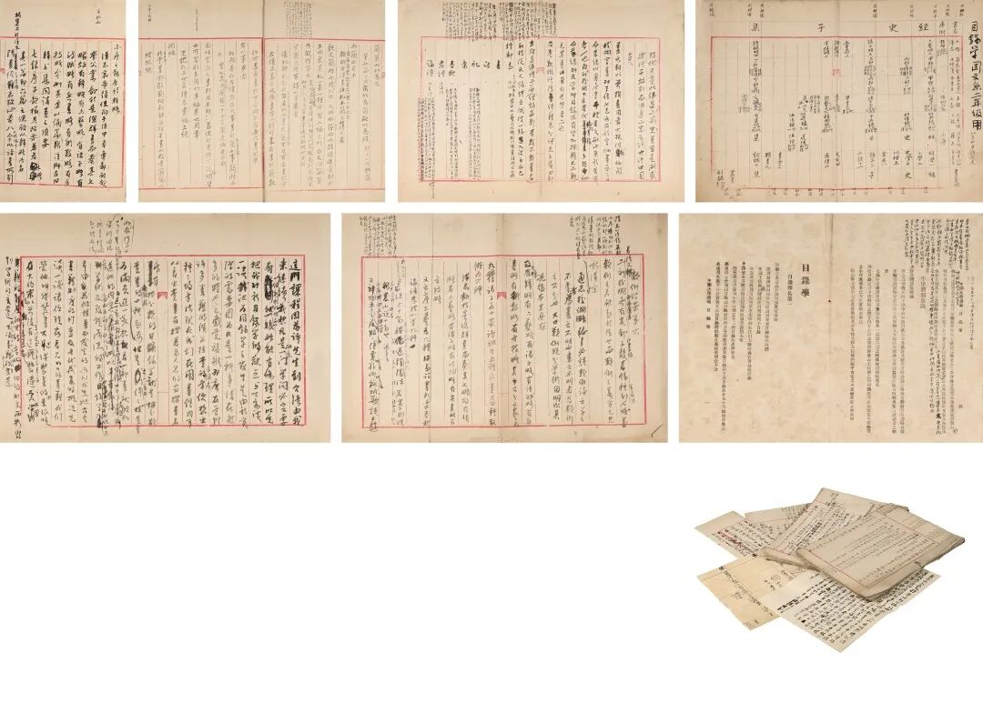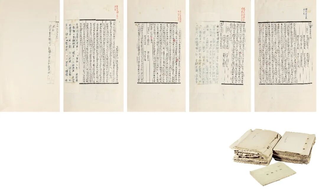 中华书局点校《二十四史》自1958年至1978年,历时二十年始竣其事,由全国两百余位专家学者,全国学术界、出版界通力合作完成,是新中国最宏大的古籍整理出版工程。点校本汇集各种版本之长、集中反映历代校勘成就,以其符合规范的标点校勘,便于阅读的印装形式,出版后很快成为《二十四史》的现代标准版本。此批稿本为汪绍楹旧藏,收录汪氏亲笔《汉书律历志》、《隋书考证》、《晋书校记》等校书稿,多处可见朱墨二色批校及“汪校、汪改、汪说”等抬头;另收部分单篇文稿,如汪绍楹《汉书西域传地理考证》、岑仲勉《跋突厥文阙特勤碑》等;还有中华书局对参与校点工作的学者印发《二十四史校勘问题举例》、《重编周书目录的几项原则》等文件(有绍楹先生上款)以及汪绍楹所书《对校点工作中的几点认识》、《校点晋书重行整理工作经过报告》、《工作计划》、《出版目标》等工作日志文件;另附部分北京图书馆善本阅览室索书单、通信,如汪校《隋书音乐志》索书单等。