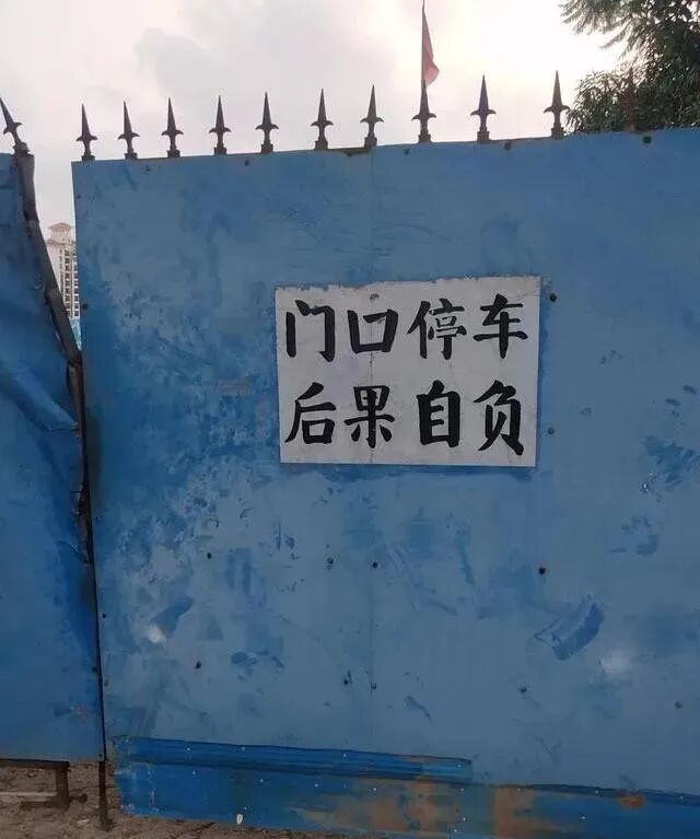 这不,一位保安大爷在门上贴的一张告示就“火” 了。这张贴在大铁门上的告示,用书法写了8个字,“门口停车,后果自负”。类似内容的告示,并不少见,而为何单单这位大爷的告示能“火”呢?
