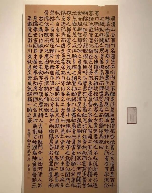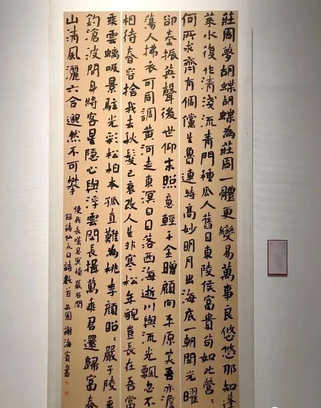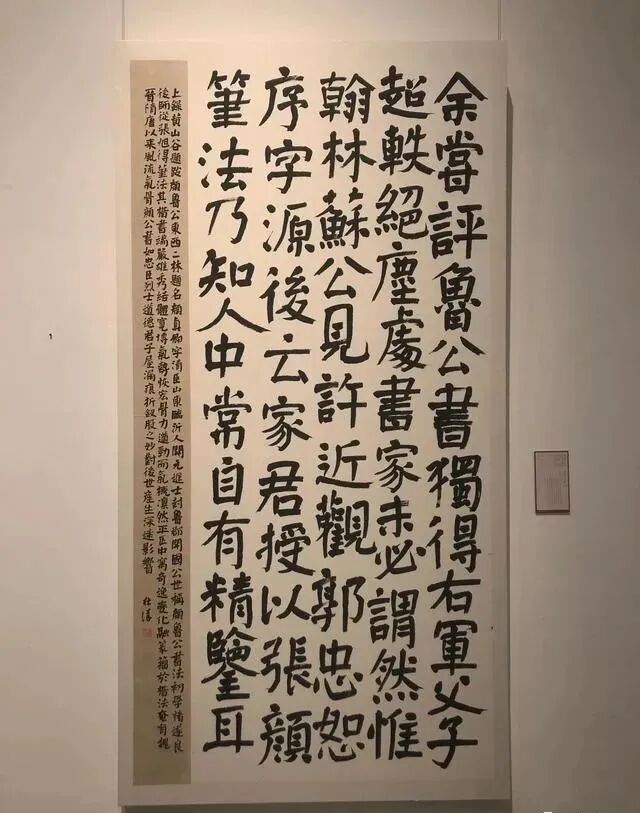 不过,国展上的颜体楷书,和保安大爷的颜体楷书有很大的不同——保安大爷的颜体楷书,更忠实于原帖风格,国展上的颜体楷书,则多是经过加工改造的风格。