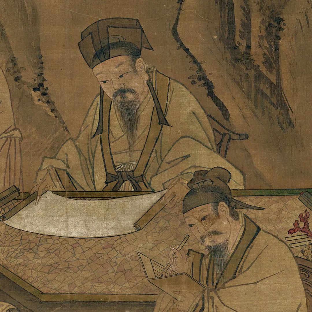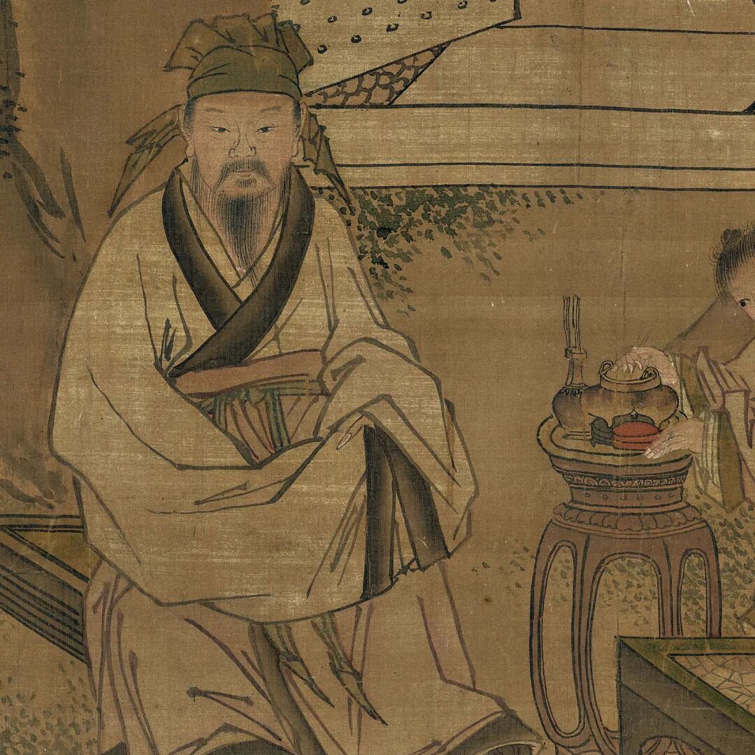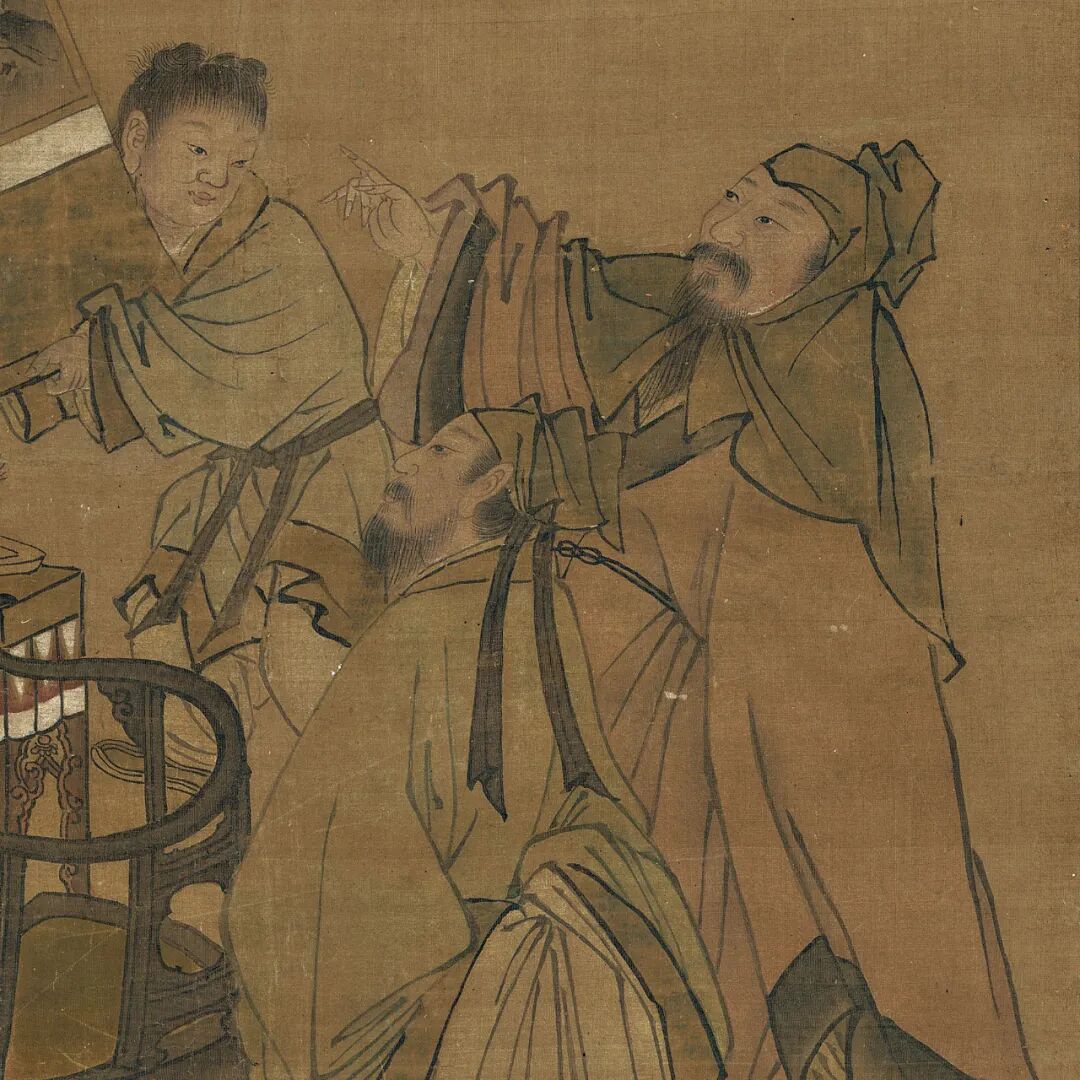 荒木千洲木盒题跋:明人陈遇,字仲行,金陵人。自名静诚,官翰林学士,礼部侍郎,礼部尚书,□辞常学画,工山水人物。大日本嘉永七寅年(1854)迠,凡四百八十七年,荒木千洲识。钤印:荒木弌印(白) 千洲(朱)本作也曾经清代日本长崎画家荒木千洲鉴赏。江户时代是存在于长崎的中日文化交流时代,江户中期是日本南画的兴起之际,中国文人画更是在日本备受推崇,而当时的学画之人多是依靠临摹中国版画、画谱来学习。因此,当时若是有一定绘画技巧的作品,定被视如拱璧。也是在这样的背景下,荒木先生在继日本南画先驱彭百川的《元明清人书画名录》之后写成了《续长崎画人传》,足见他在中国画领域的功力。依据清代日本长崎画家荒木千洲所言,此作当为明早期人物画家陈遇手笔。