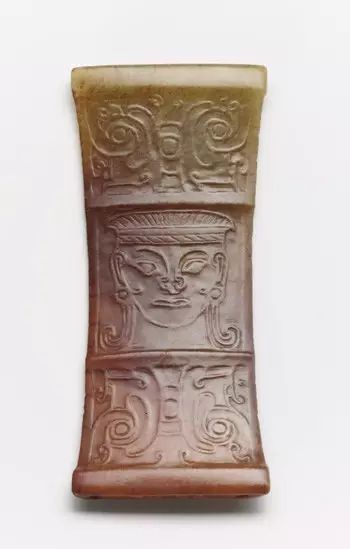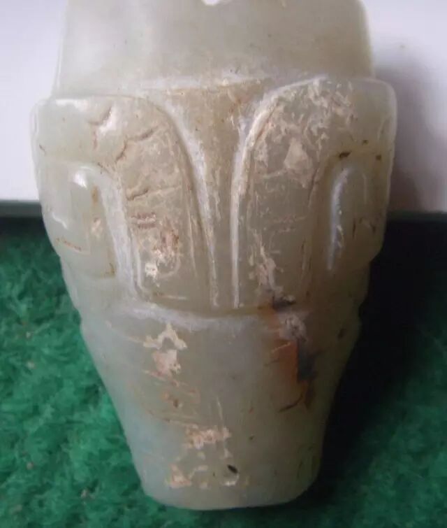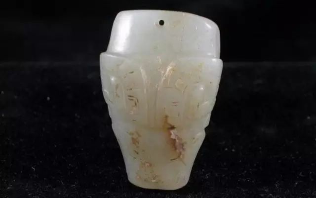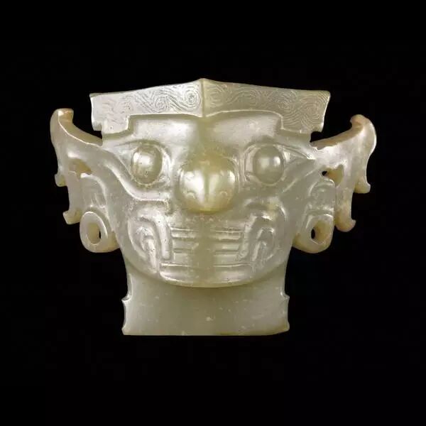 商代的玉兽面继续神秘着,很多兽面镶嵌在青铜和象牙上,继续扮演着通天神的法器或者商王祭祀时手里就拿着它。商晚期和田白玉的出现,高等级的和田白玉雕琢的兽面代表着神权王权和财富。