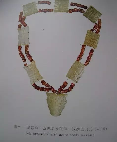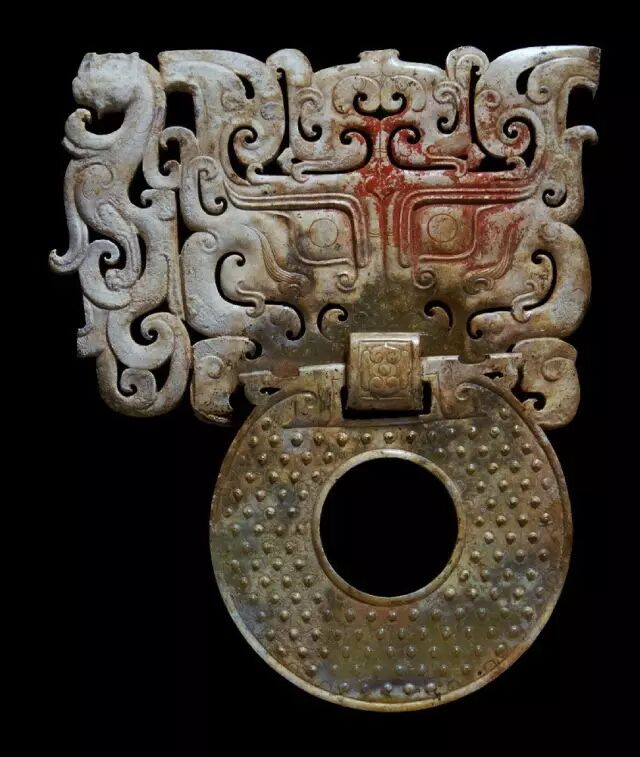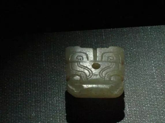 西周始,玉兽面开始成为高级贵族的装饰物,出现在项饰和腕饰上。但真正高质素的和田白玉和黄玉唯有国君一样的人物才能佩带。三门峡虢国国君墓的一个白玉兽面应该是商代的,可能是周王伐纣的战利品。西周的兽面神秘感骤减。
