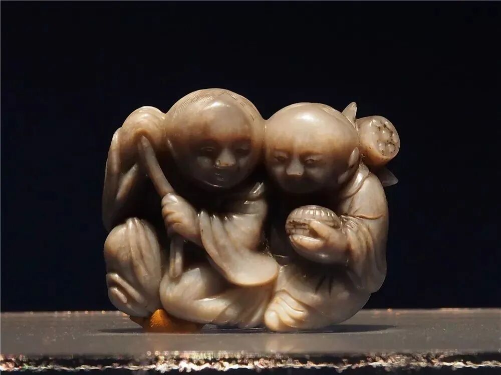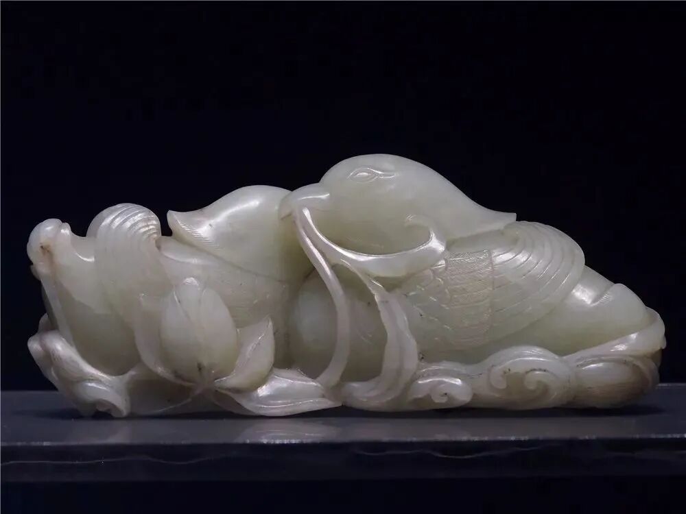 玉佩历代皆有,至把玩之品,自秦汉始盛行于世。诚以玉佩皆所斩成片段,故宜佩之身边。把玩之玉多子玉,椭形者占多数,故宜持在手内而易于玩弄也,余所见把玩之玉,多系雕以鸟兽虫鱼,龙虎虬螭等式,均系子玉,且皆秦汉以后之物,未见有三代之器。足见把玩之品,皆因子玉物小而精,后人不忍斩成片段故也。余昔存一白玉蟾,大可盈把,背沁有茄皮色,后被子方侄携去。存一玉虎,已成黑漆古,不露质地,刀工系汉八刀,佩之数年,后在广州有有人招饮,醉坐洋车而睡,手中所持之玉虎,不知失落何处,今尚有一玉虬,全身黑漆古,刀工极精,惜其角上,关注公众号:人二。于出土时受有斧铲微伤;又有一白玉鸳鸯,卧荷叶上,沁有铁莲青,枣皮红等色,颇佳;又有一黄玉暖手,上刻一蝙蝠,全体刻卐字,盖取万福同攸之意也,受水银沁极重,刀工朴拙,含有古趣。以上数品,皆汉物也,至六朝以后把玩者,土古尤多,但已元逊秦汉亦。