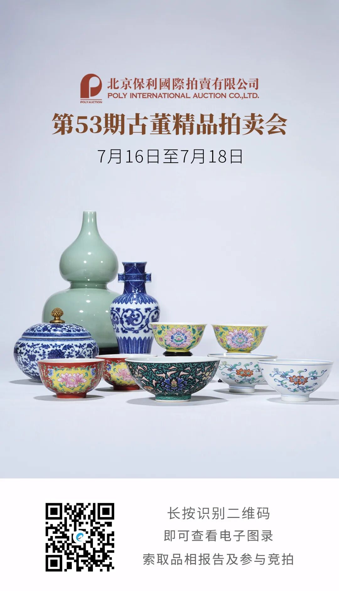7月16日至18日,北京保利『第53期古董精品拍卖会』将在北京万特黄金珠宝中心B1举行,上拍瓷器、玉器及文玩杂项精品两千三百余件,当中不乏兼具学术价值与市场价值之珍品,联拍在线将全程直播,并提供实时同步竞拍技术和服务支持。
