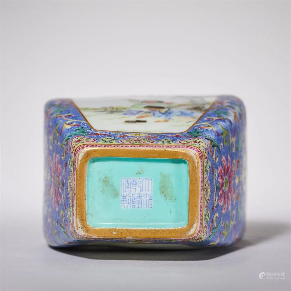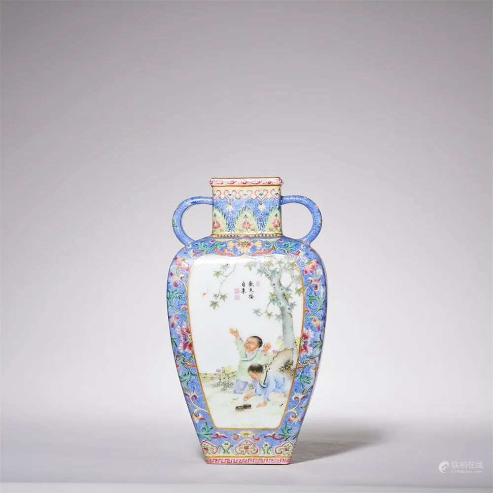 拍品估价:100,000 - 150,000 人民币来源:加拿大藏家1949年以前购于上海,后入藏蒙特利尔博物馆,美国拍卖公司释出Lot 122 民国 蓝地珐琅彩轧道缠枝莲开光婴戏纹双耳方瓶拍品估价:300,000 - 500,000 人民币1.天津国拍,2011春拍天津文物专场,2011年5月13日,编号5942.北京翰海,2013年6月2日,编号3043(附2011天津文物专场图录)